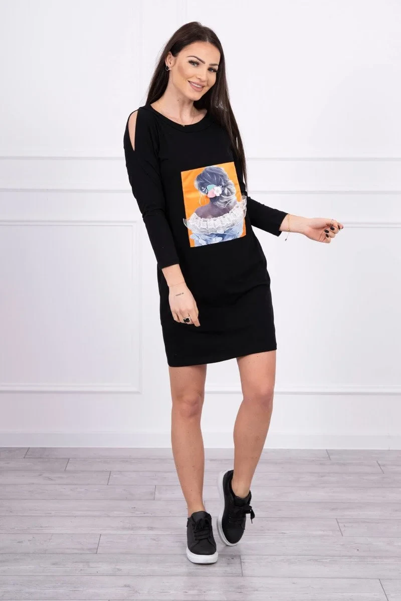 Představujeme vám módní šaty. Šaty mají na přední straně našitou grafiku dívky. Šaty s průstřihy na ramenou. Ideální pro každodenní použití. Šaty jsou vyrobeny z vysoce kvalitního materiálu. Velikost je univerzální a vyhovuje dámám, které nosí velikost S, M nebo L.