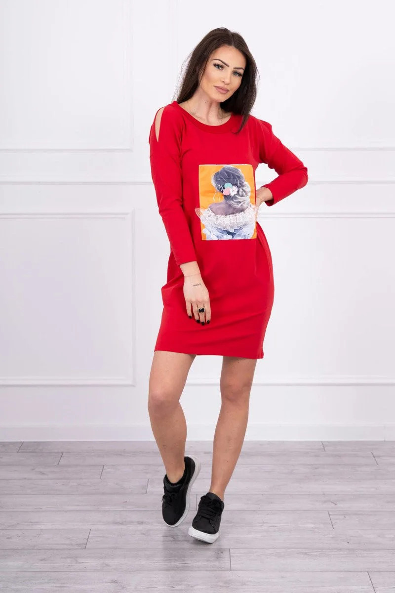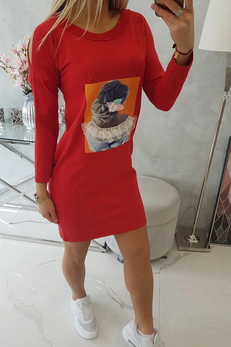 Představujeme vám módní šaty. Šaty mají na přední straně našitou grafiku dívky. Šaty s průstřihy na ramenou. Ideální pro každodenní použití. Šaty jsou vyrobeny z vysoce kvalitního materiálu. Velikost je univerzální a vyhovuje dámám, které nosí velikost S, M nebo L.