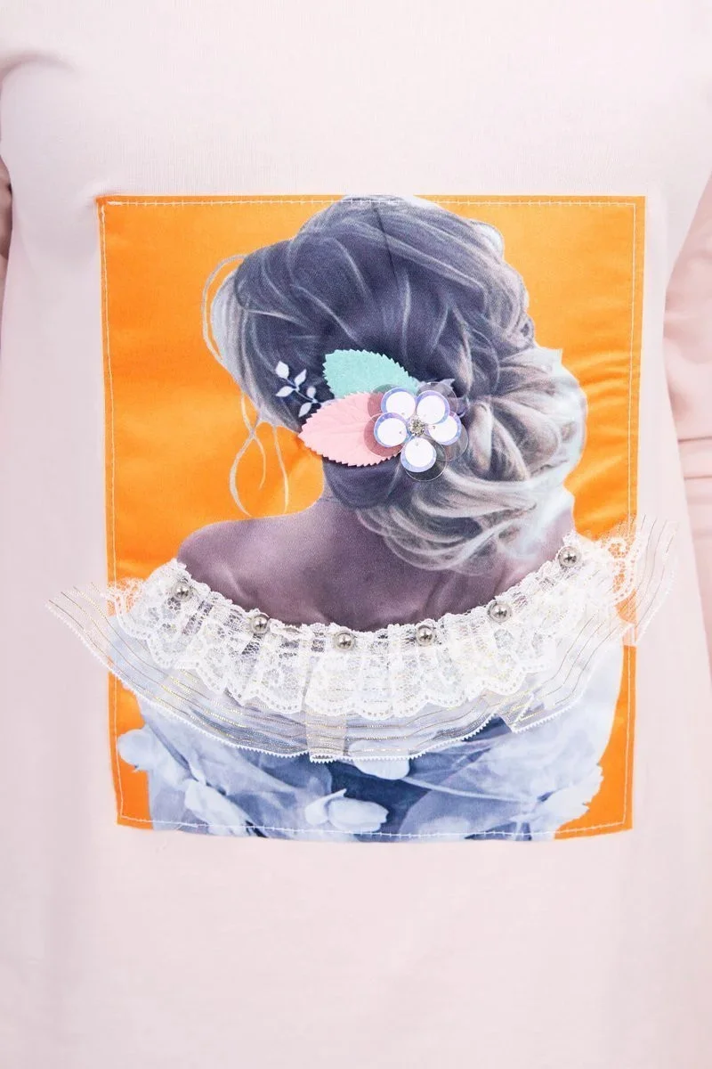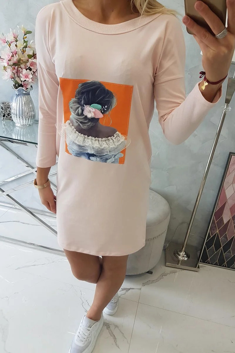 Přidání recenze k Šaty s 3D grafikou, krajková pudrově růžová