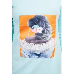 Šaty s 3D grafikou, mátová krajka