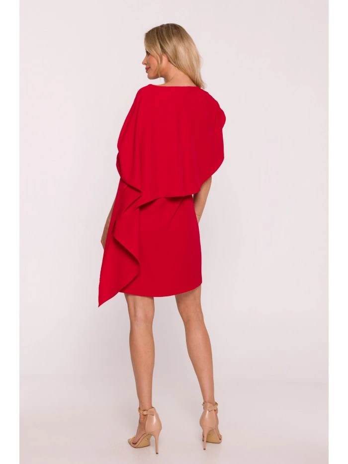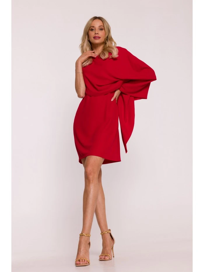 materiál: 95% polyester 5% elastan LÁTKA: hladká tkanina s jemným leskem PODROBNOSTI O PRODUKTU Výstřih: kulatý Rukávy: asymetrické, volně řasený plášť vytvářející elegantní efekt na ramenou Sukně: rovná, mírně vypasovaná Zapínání: skrytý boční zip Model: S423 Navrženo a vyrobeno v Polsku Modelka je vysoká 174 cm a nosí velikost S STYL A STŘIH Styl: elegantní koktejlové šaty s ozdobným pláštěm Tvar: rovná silueta, vrchní díl s ozdobným pláštěm a asymetrickým řasením Délka: nad kolena