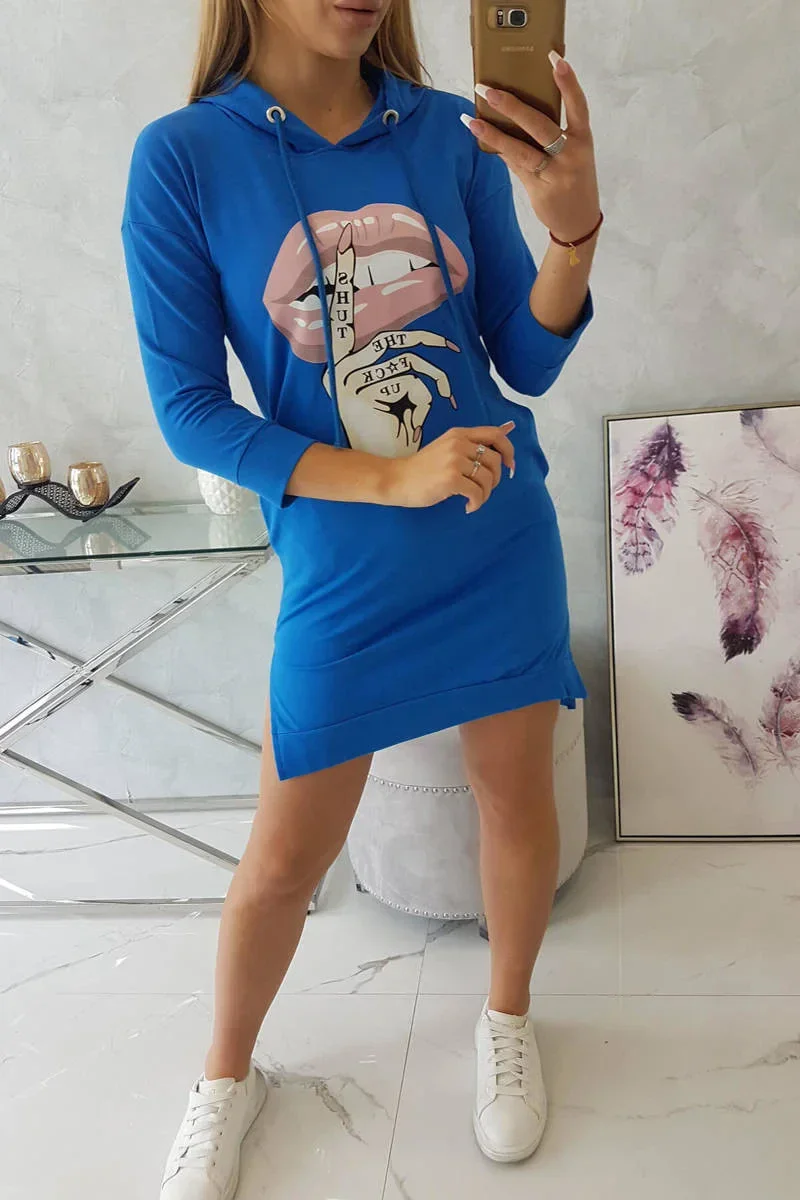 Představujeme vám pohodlné šaty. Šaty s kapucí a módním barevným potiskem. Šaty s delšími zády. Velmi zajímavá nabídka pro všechny dámy. Šaty jsou vyrobeny z vysoce kvalitního materiálu. Velikost je univerzální a vyhovuje dámám, které nosí velikost S, M nebo L.