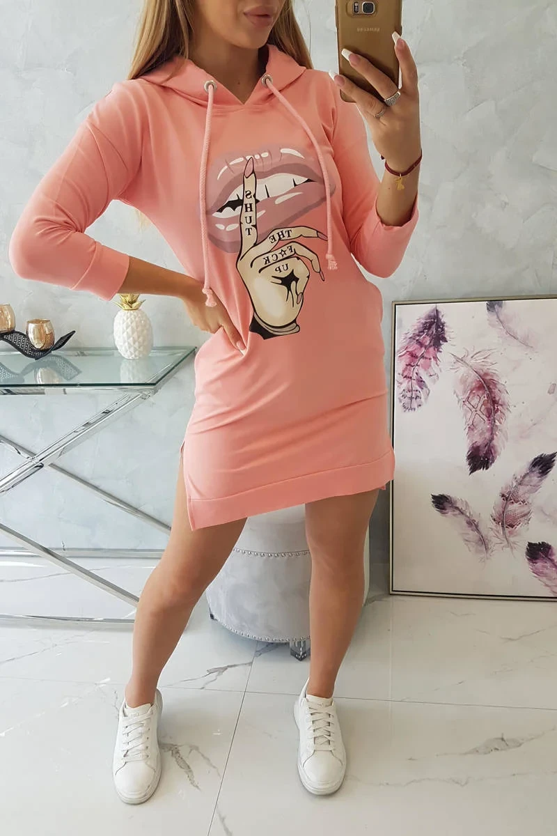 Představujeme vám pohodlné šaty. Šaty s kapucí a módním barevným potiskem. Šaty s delšími zády. Velmi zajímavá nabídka pro všechny dámy. Šaty jsou vyrobeny z vysoce kvalitního materiálu. Velikost je univerzální a vyhovuje dámám, které nosí velikost S, M nebo L.