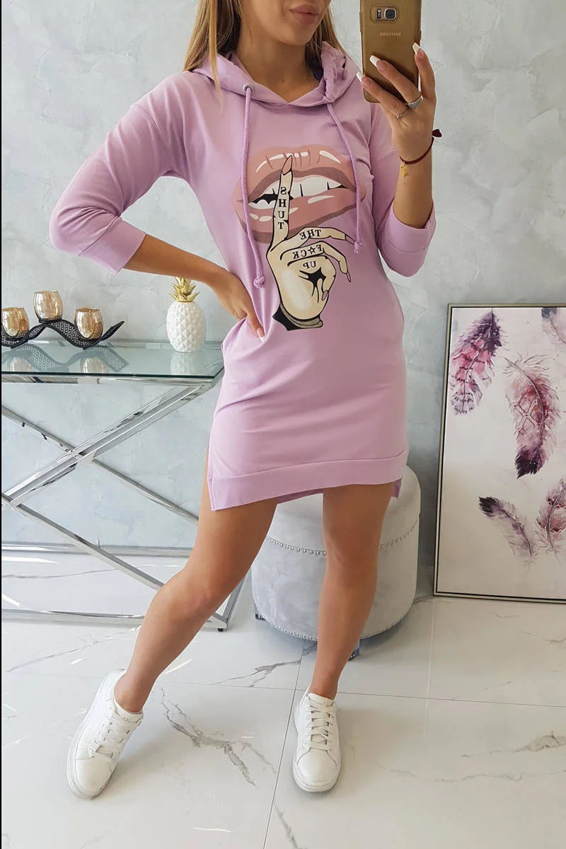 Představujeme vám pohodlné šaty. Šaty s kapucí a módním barevným potiskem. Šaty s delšími zády. Velmi zajímavá nabídka pro všechny dámy. Šaty jsou vyrobeny z vysoce kvalitního materiálu. Velikost je univerzální a vyhovuje dámám, které nosí velikost S, M nebo L.