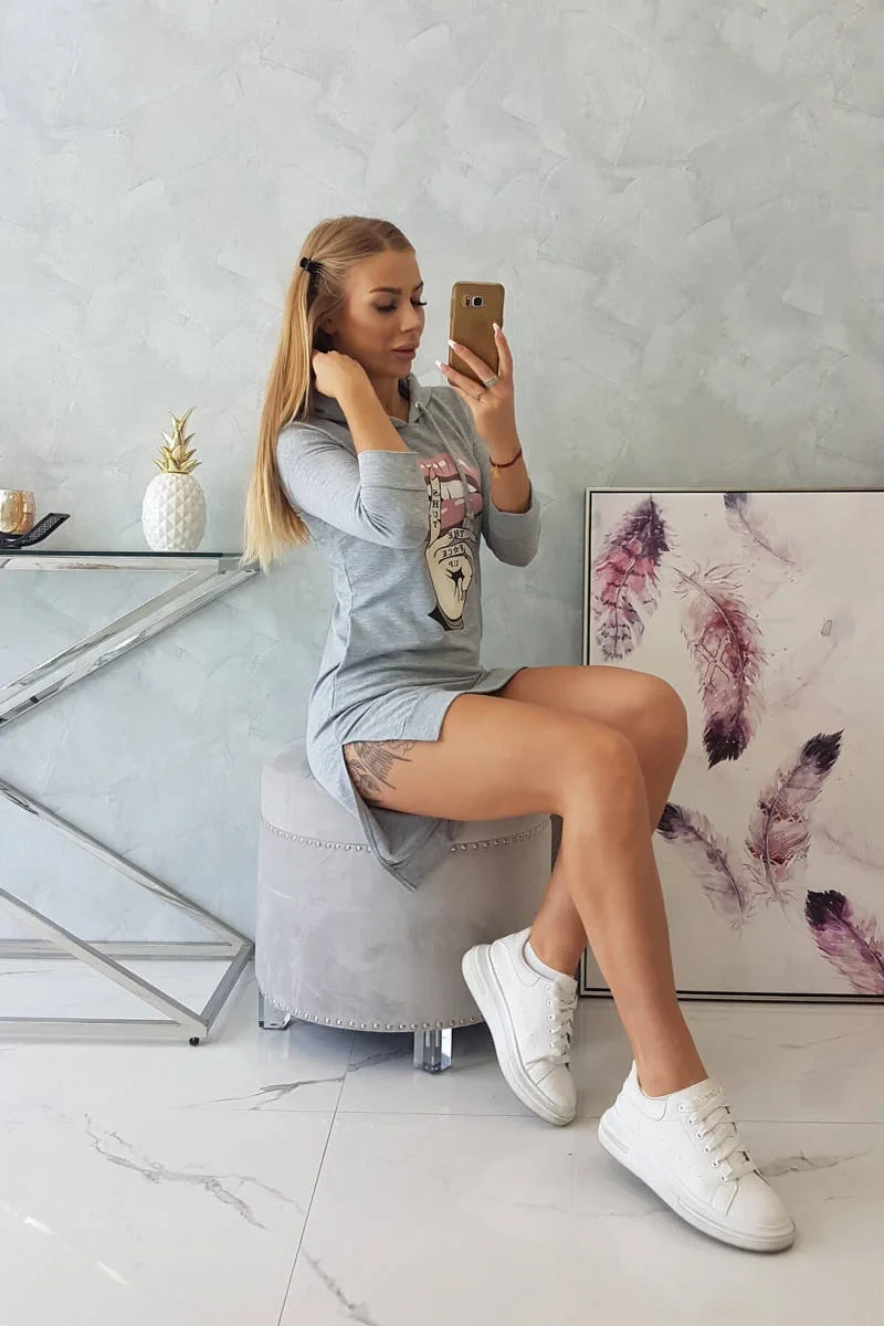 Představujeme vám pohodlné šaty. Šaty s kapucí a módním barevným potiskem. Šaty s delšími zády. Velmi zajímavá nabídka pro všechny dámy. Šaty jsou vyrobeny z vysoce kvalitního materiálu. Velikost je univerzální a vyhovuje dámám, které nosí velikost S, M nebo L.