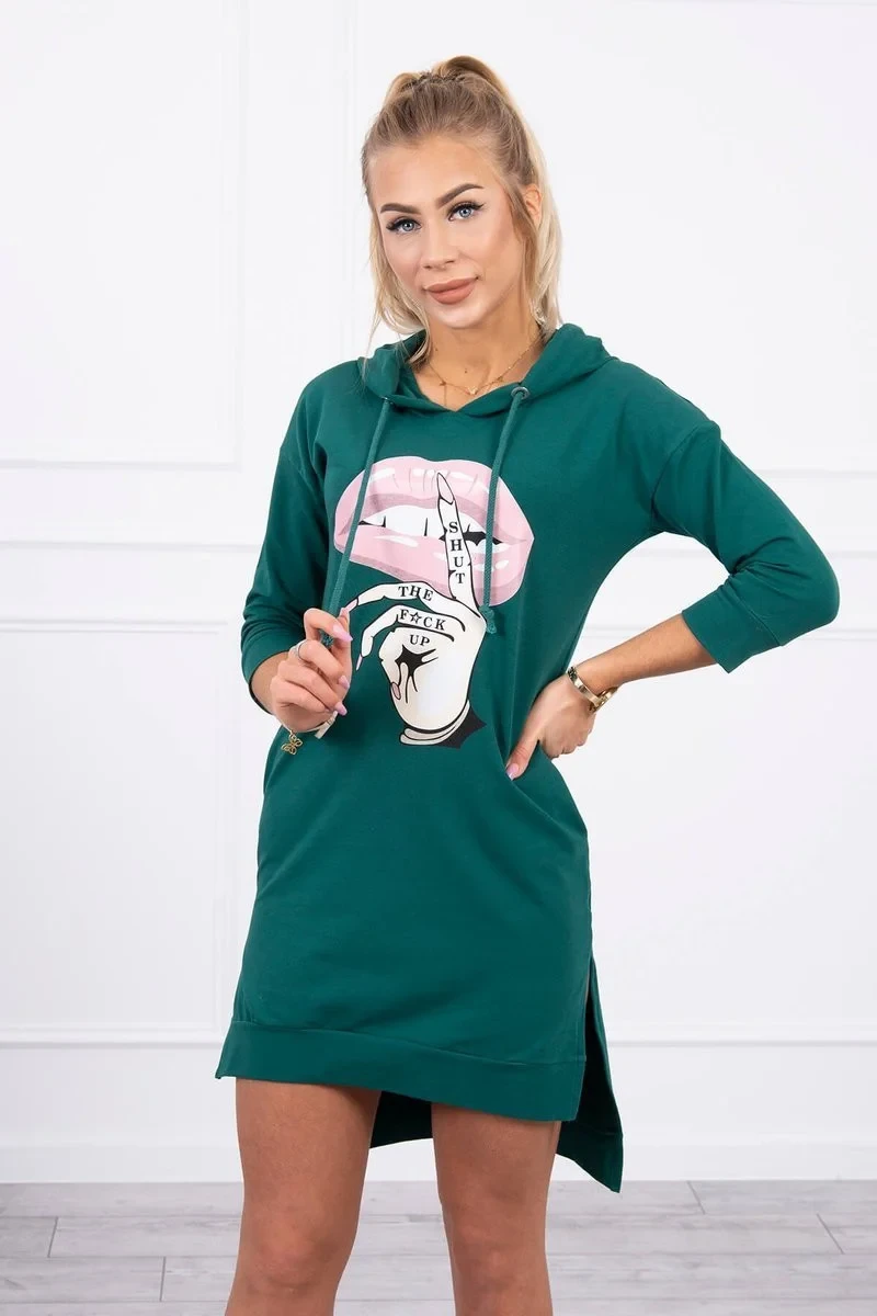 Představujeme vám pohodlné šaty. Šaty s kapucí a módním barevným potiskem. Šaty s delšími zády. Velmi zajímavá nabídka pro všechny dámy. Šaty jsou vyrobeny z vysoce kvalitního materiálu. Velikost je univerzální a vyhovuje dámám, které nosí velikost S, M nebo L.