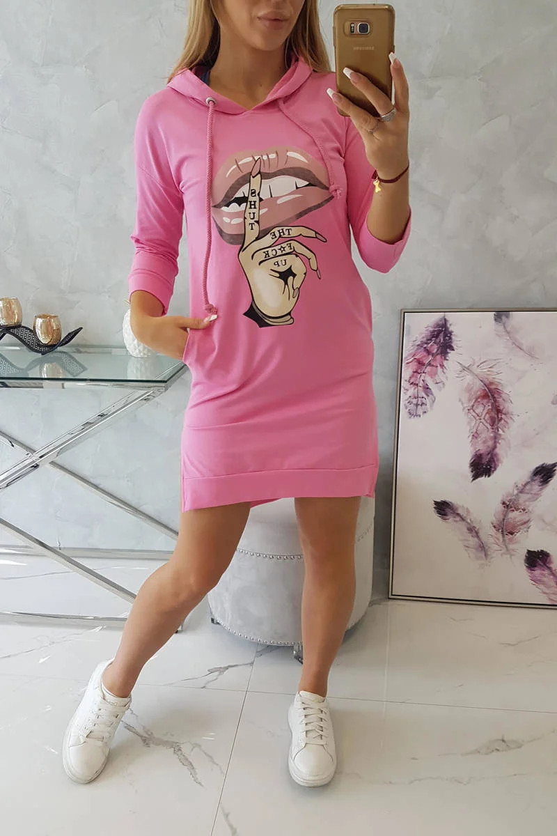 Představujeme vám pohodlné šaty. Šaty s kapucí a módním barevným potiskem. Šaty s delšími zády. Velmi zajímavá nabídka pro všechny dámy. Šaty jsou vyrobeny z vysoce kvalitního materiálu. Velikost je univerzální a vyhovuje dámám, které nosí velikost S, M nebo L.