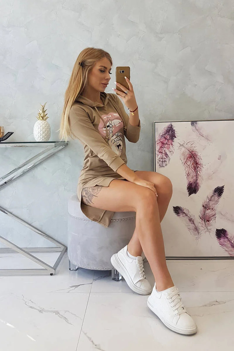 Představujeme vám pohodlné šaty. Šaty s kapucí a módním barevným potiskem. Šaty s delšími zády. Velmi zajímavá nabídka pro všechny dámy. Šaty jsou vyrobeny z vysoce kvalitního materiálu. Velikost je univerzální a vyhovuje dámám, které nosí velikost S, M nebo L.