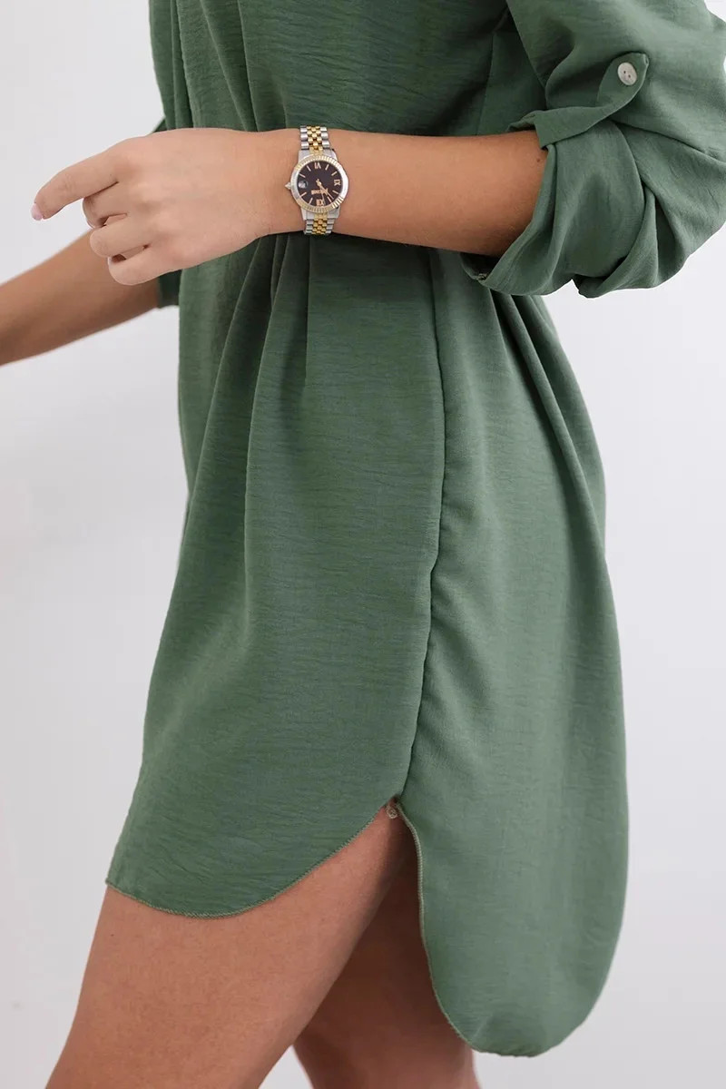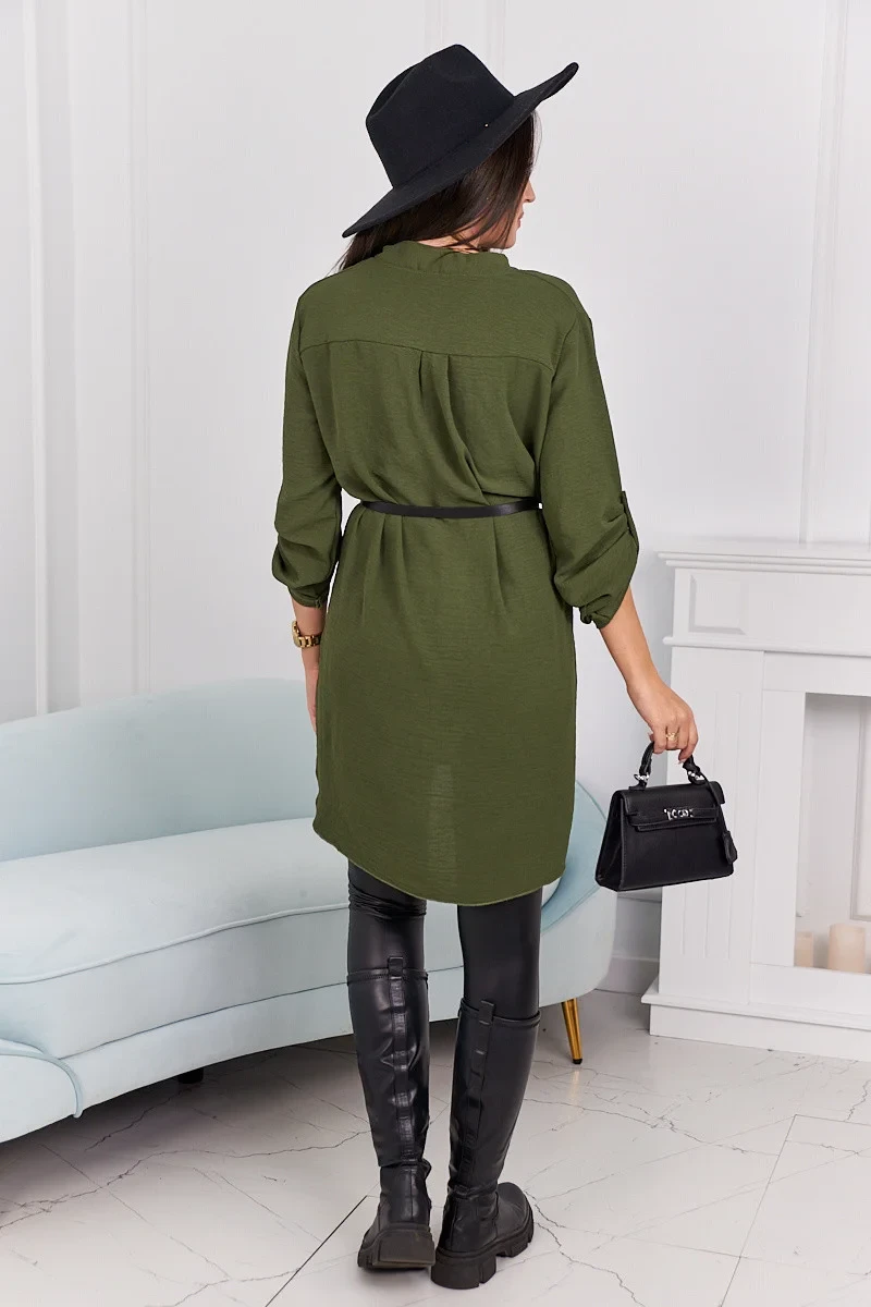Šaty s delšími zády a pásem khaki