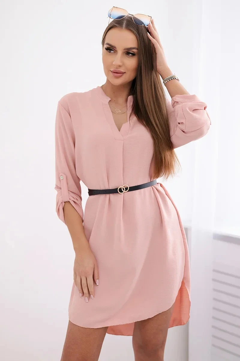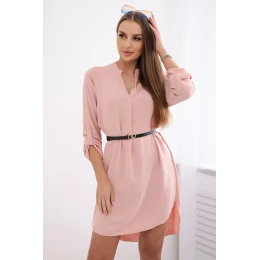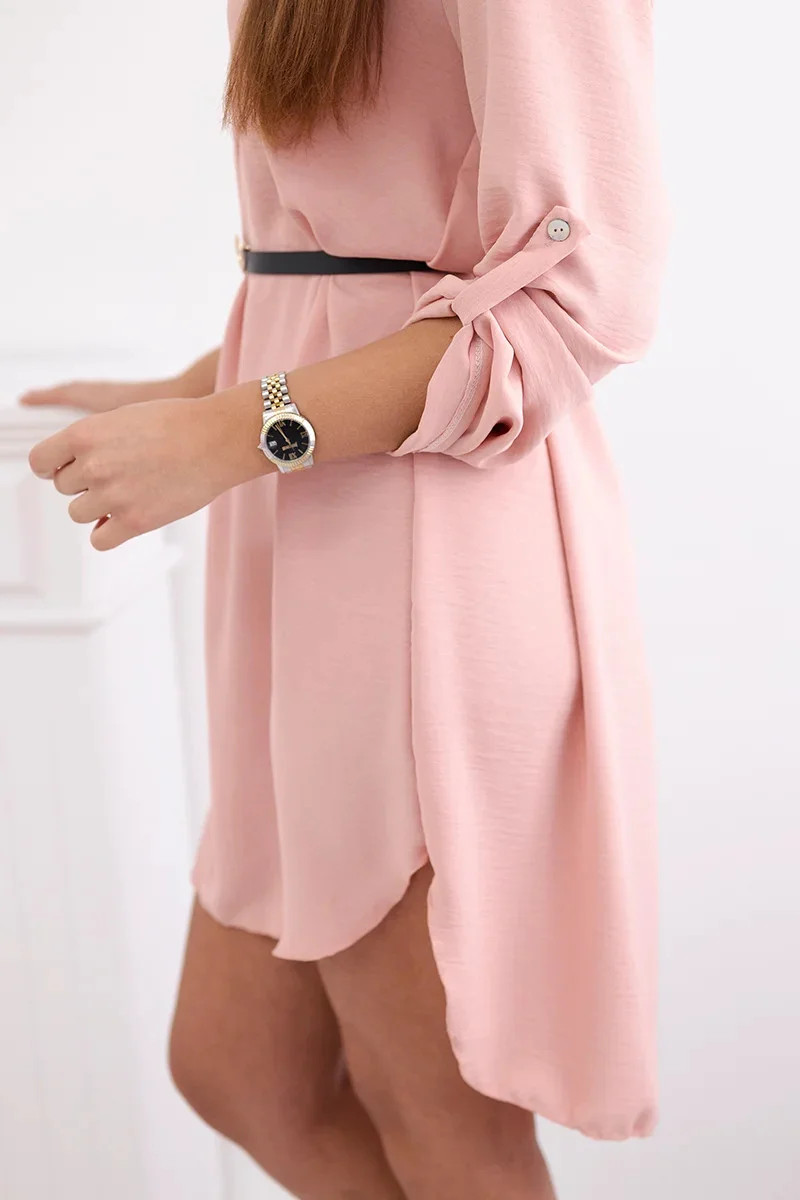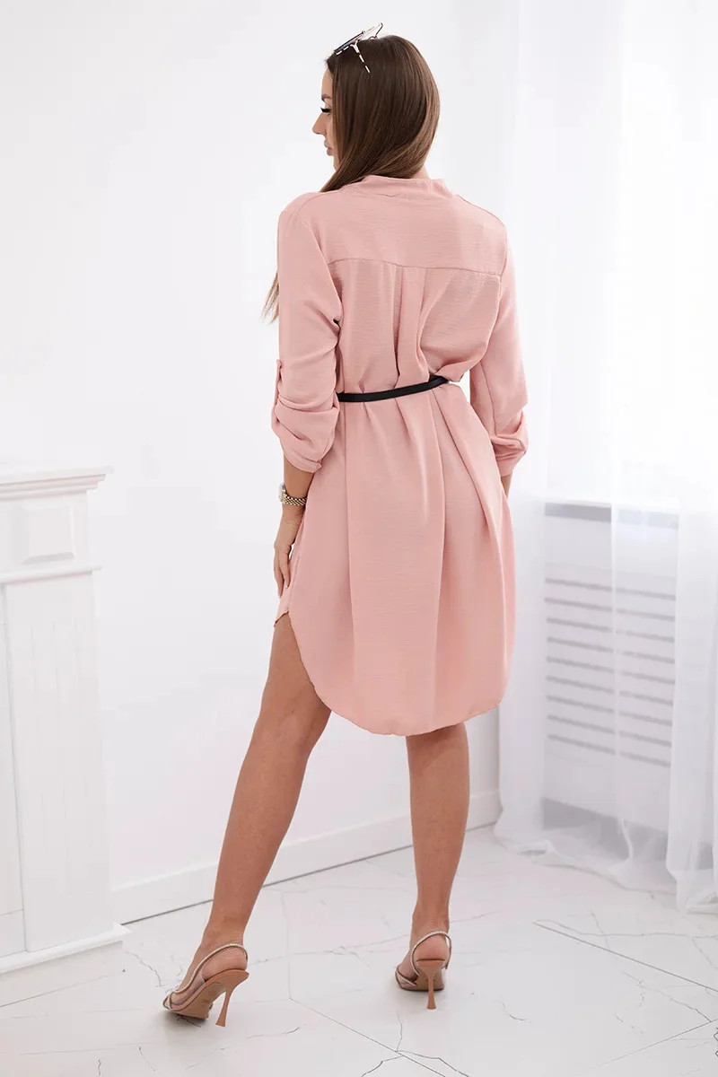 Šaty s delšími zády a pásem pudrově růžová