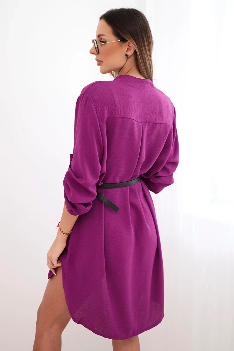 Šaty s delšími zády a páskem tmavě fialová