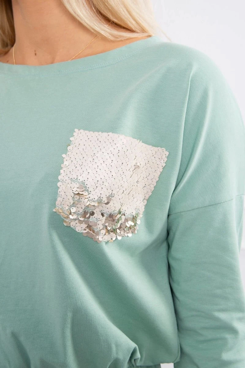 Šaty s flitrovou kapsou tmavě mátové