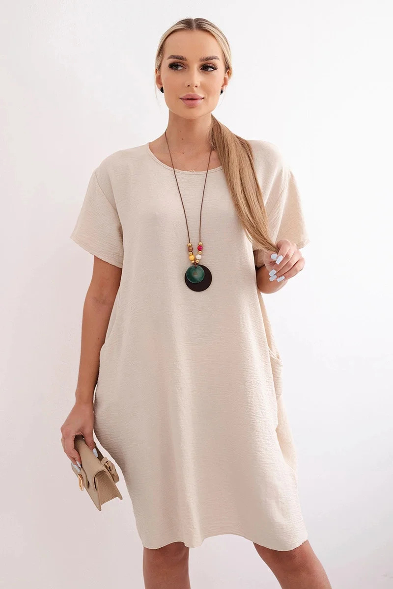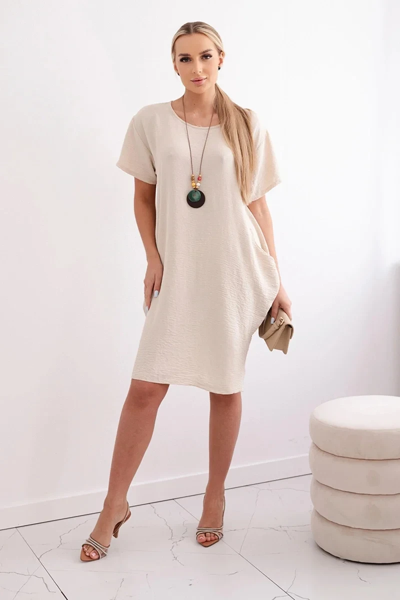 Šaty s kapsami a přívěskem tmavě béžová
