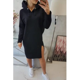 Šaty s kapucí a bočním rozparkem černé