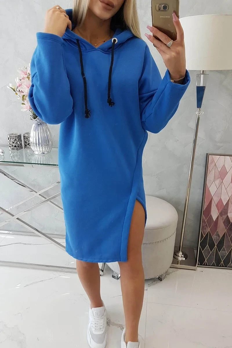 Šaty s kapucí a bočním rozparkem chrpově modré