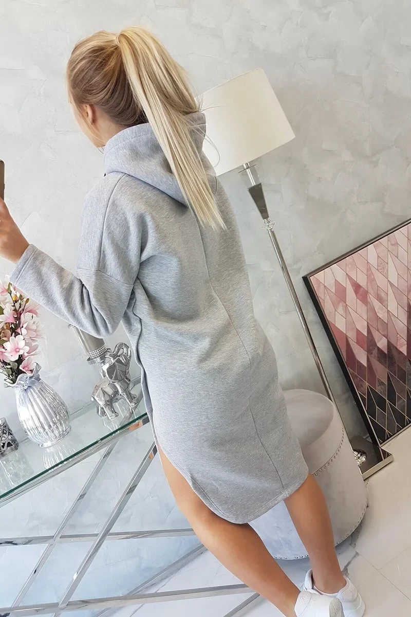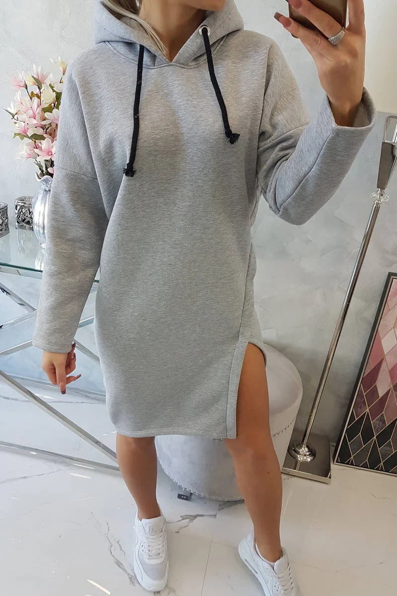 Šaty s kapucí a bočním rozparkem šedé