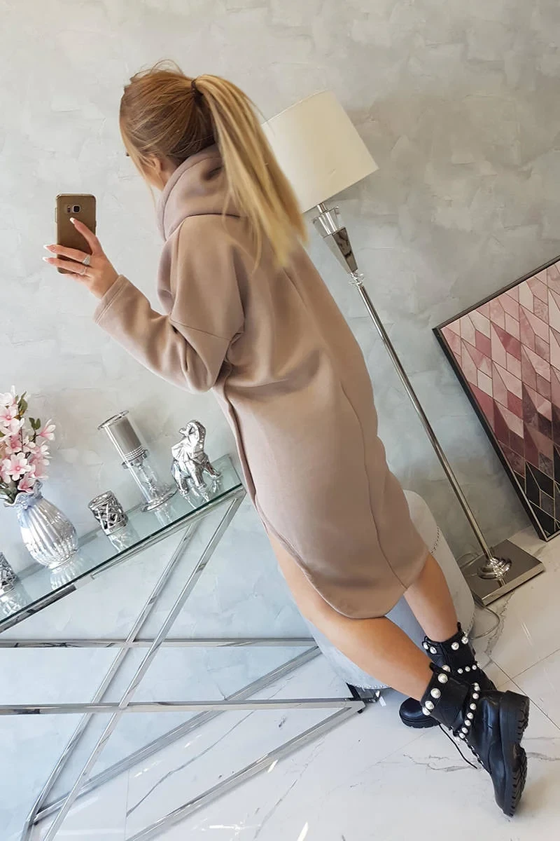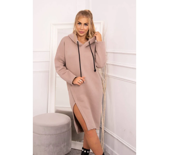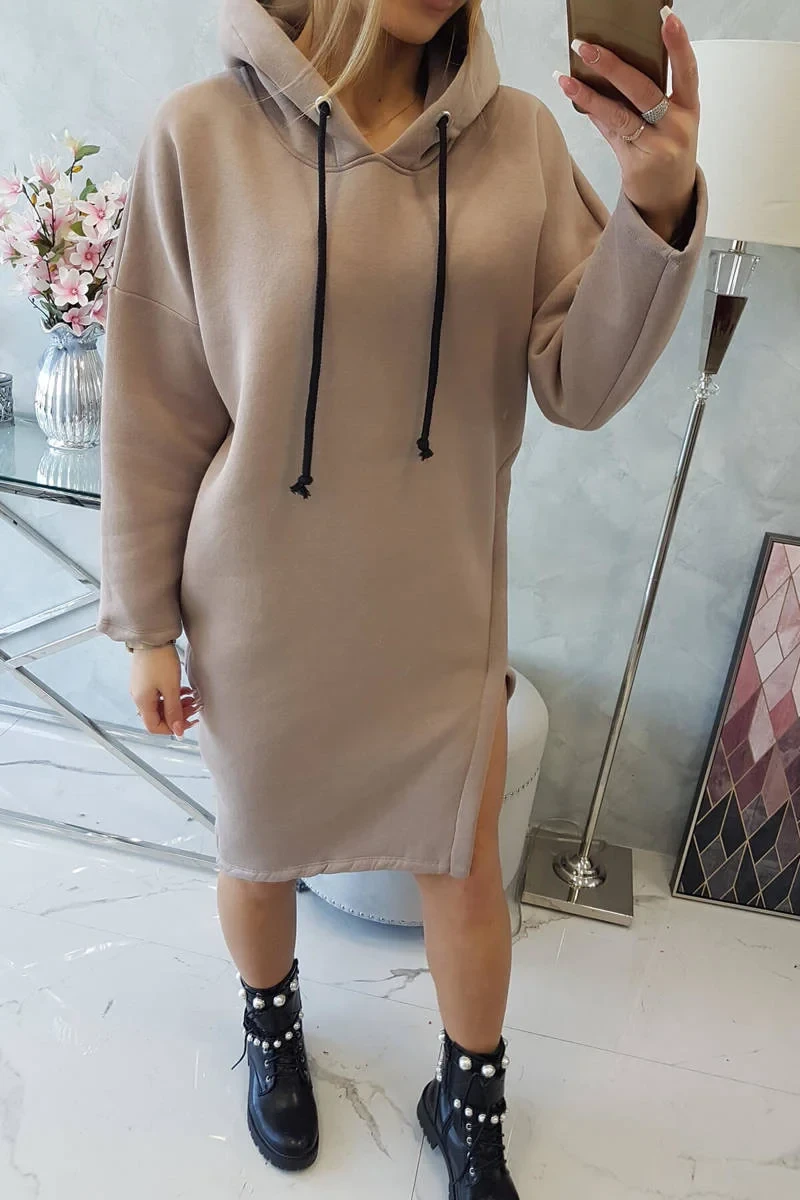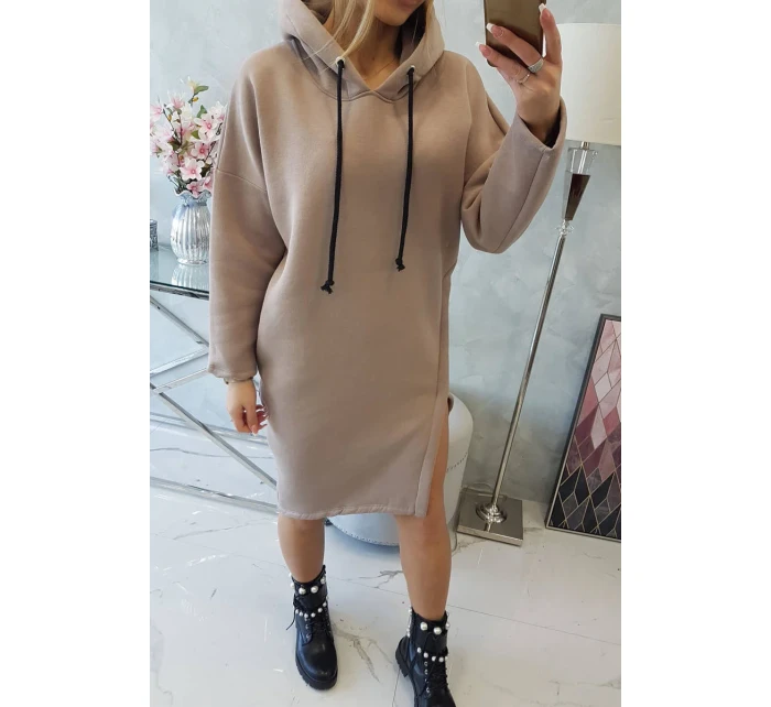 Šaty s kapucí a bočním rozparkem tmavě béžové