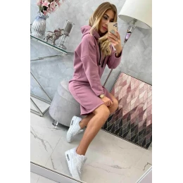 Šaty s kapucí a bočním rozparkem tmavě růžové