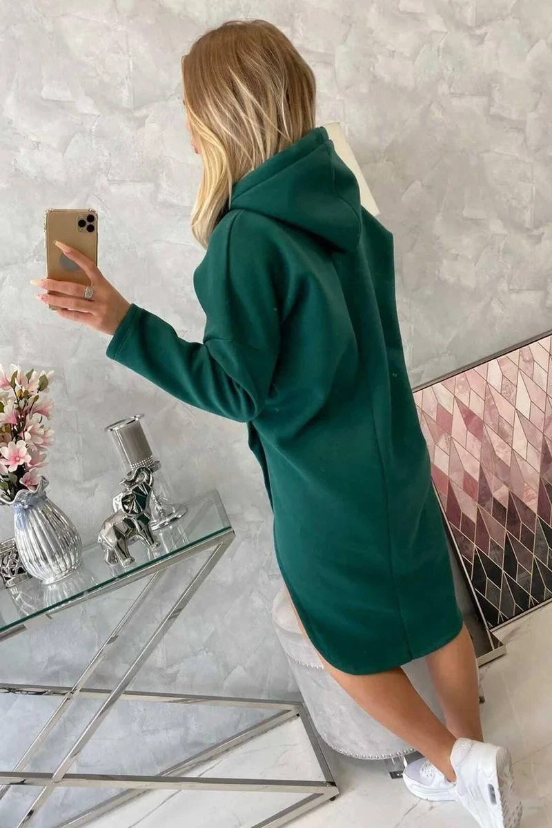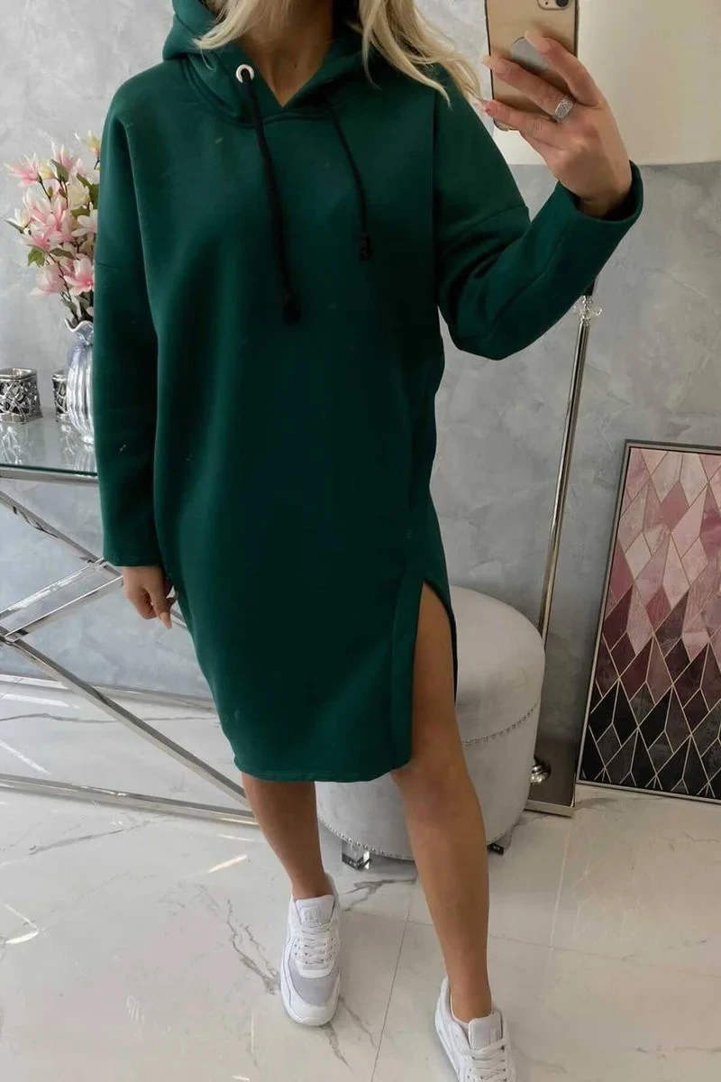Šaty s kapucí a bočním rozparkem tmavě zelené