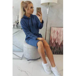 Šaty s kapucí a bočním rozparkem z džínoviny