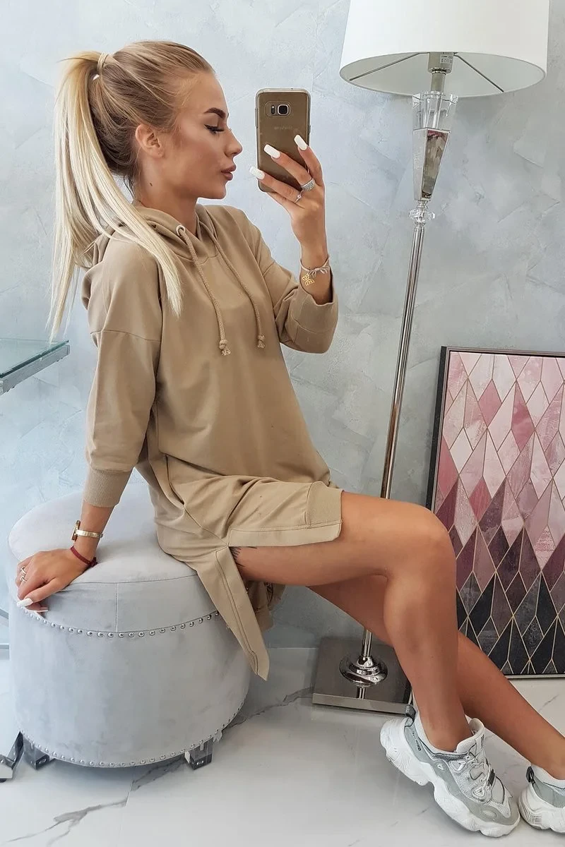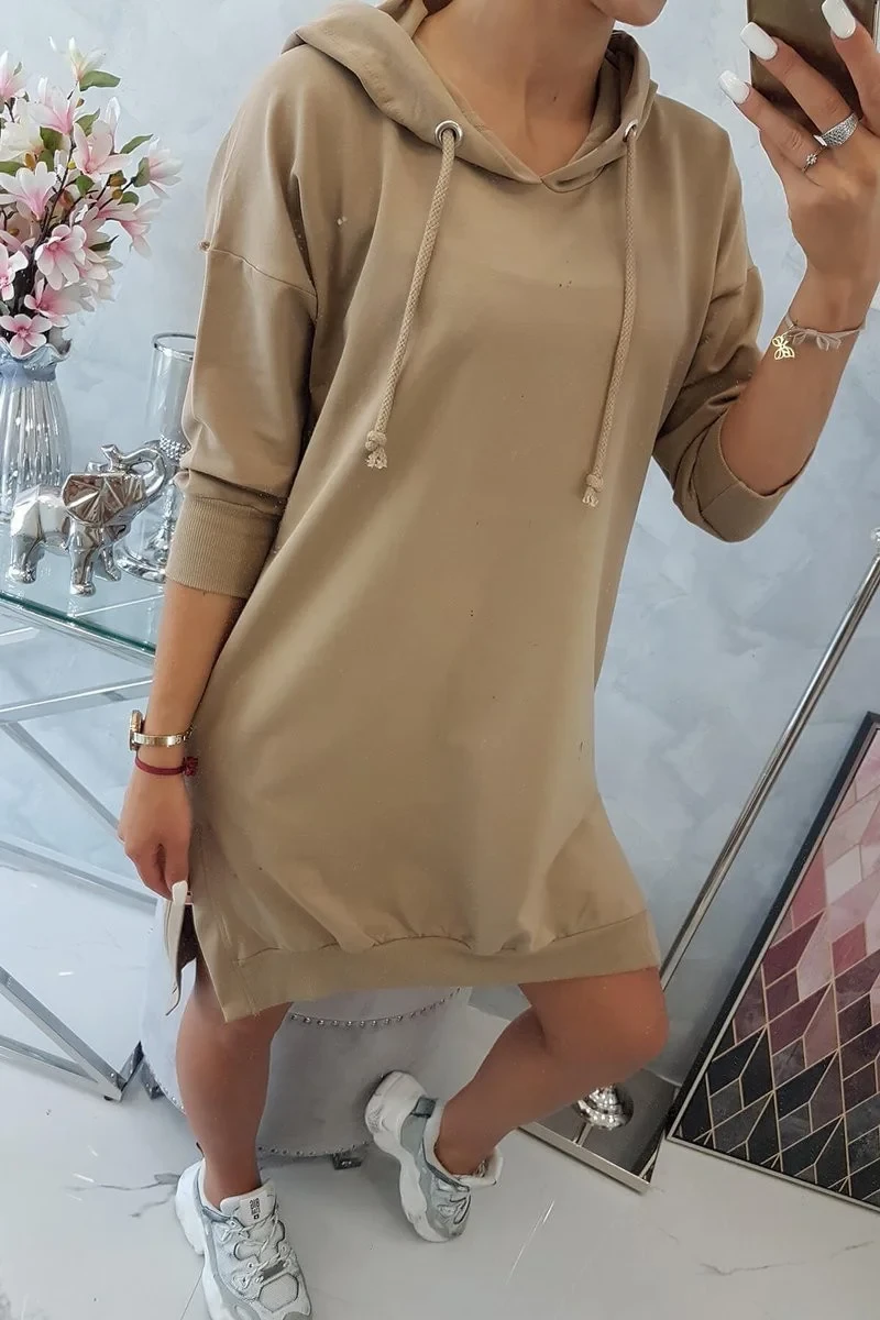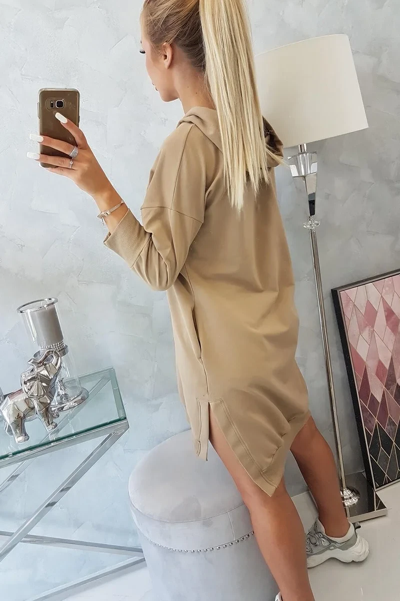 Představujeme vám pohodlné šaty s kapucí. Šaty mají kapsy a delší zadní díl. Ideální pro každou dámu. Šaty jsou vyrobeny z vysoce kvalitního materiálu. Velikost je univerzální a vyhovuje dámám, které nosí velikost S, M nebo L.