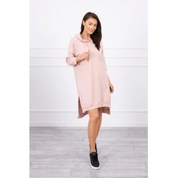 Šaty s kapucí a delšími zády tmavě pudrově růžové