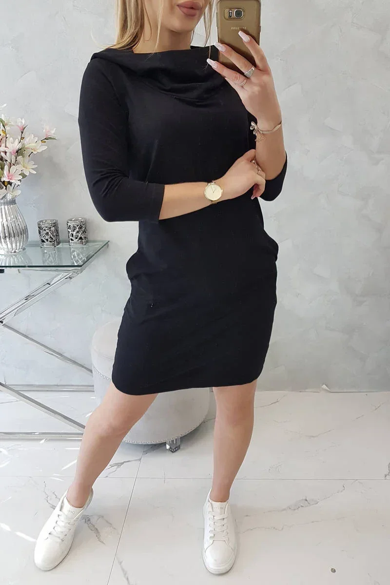 Šaty s kapucí a kapsami černé