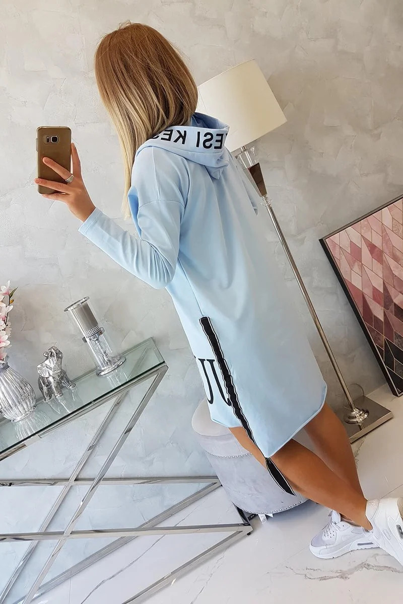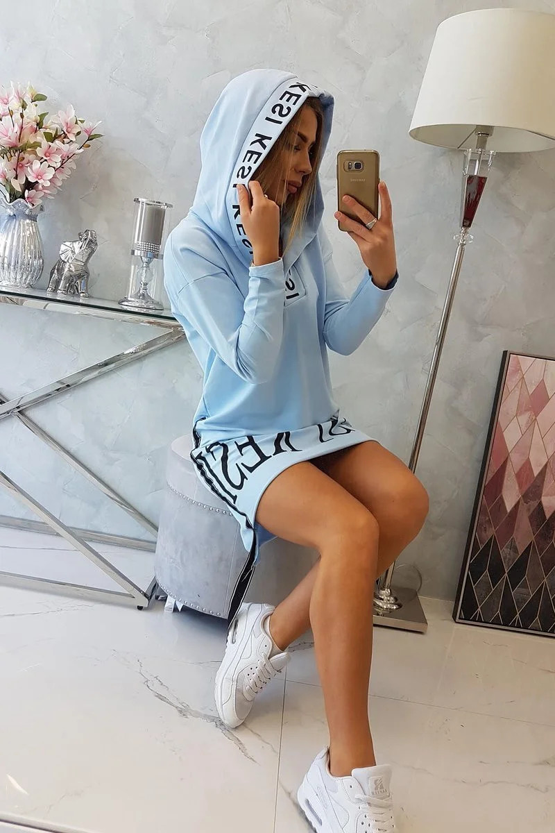 Šaty s kapucí a potiskem modré