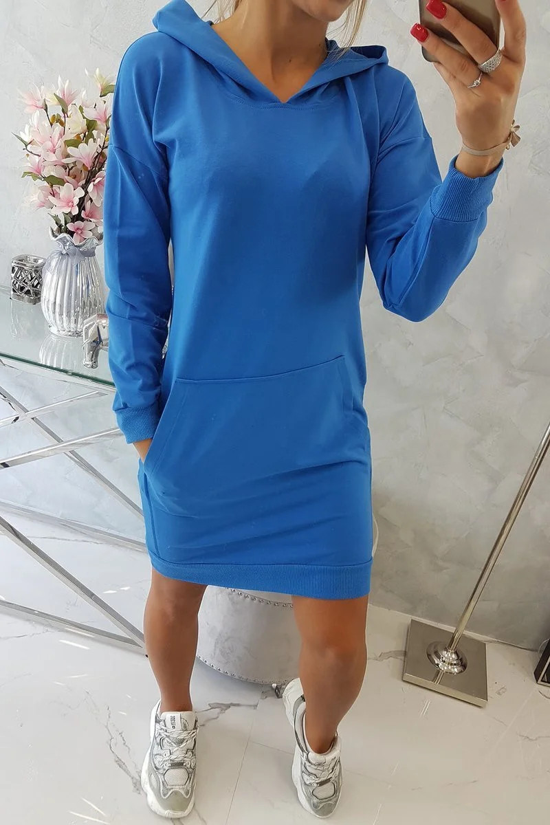 Představujeme vám pohodlné šaty. Šaty s kapucí a klokaní kapsou. Šaty nemají potisk, takže se hodí k široké škále outfitů. Šaty jsou vyrobeny z vysoce kvalitního materiálu. Velikost je univerzální a vyhovuje dámám, které nosí velikost S, M nebo L.