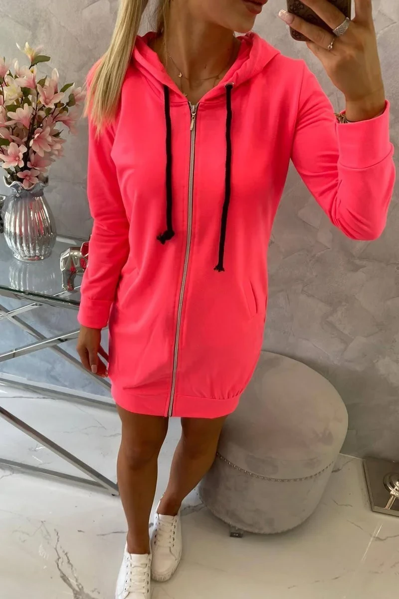 Šaty s kapucí mikina růžová neonová