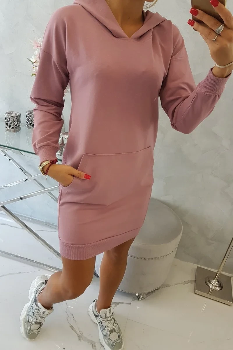 Šaty s kapucí tmavě růžové