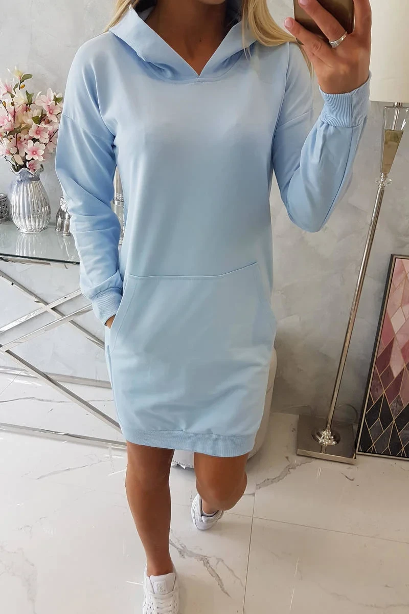 Představujeme vám pohodlné šaty. Šaty s kapucí a klokaní kapsou. Šaty nemají potisk, takže se hodí k široké škále outfitů. Šaty jsou vyrobeny z vysoce kvalitního materiálu. Velikost je univerzální a vyhovuje dámám, které nosí velikost S, M nebo L.
