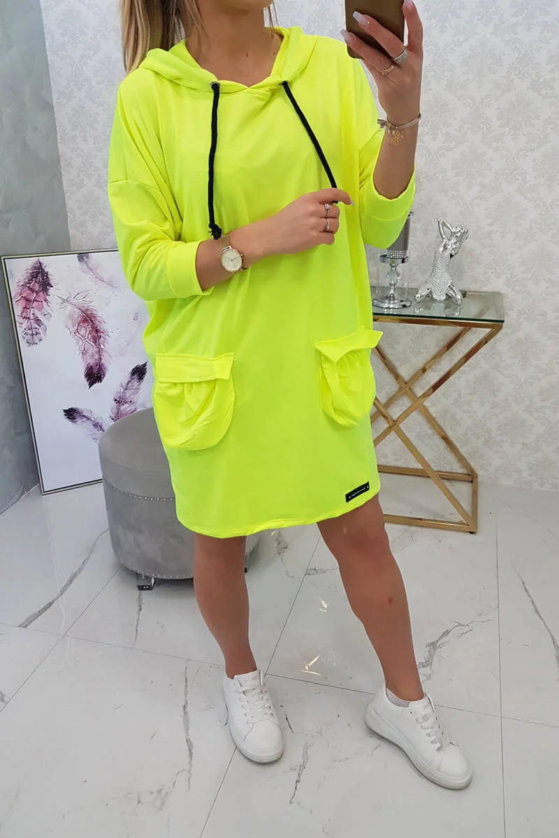 Představujeme vám pohodlné šaty. Šaty s kapucí a kapsami na přední straně. Šaty nemají potisk, takže se hodí k široké škále outfitů. Šaty jsou vyrobeny z vysoce kvalitního materiálu. Velikost je univerzální a vyhovuje dámám, které nosí velikost S, M nebo L.