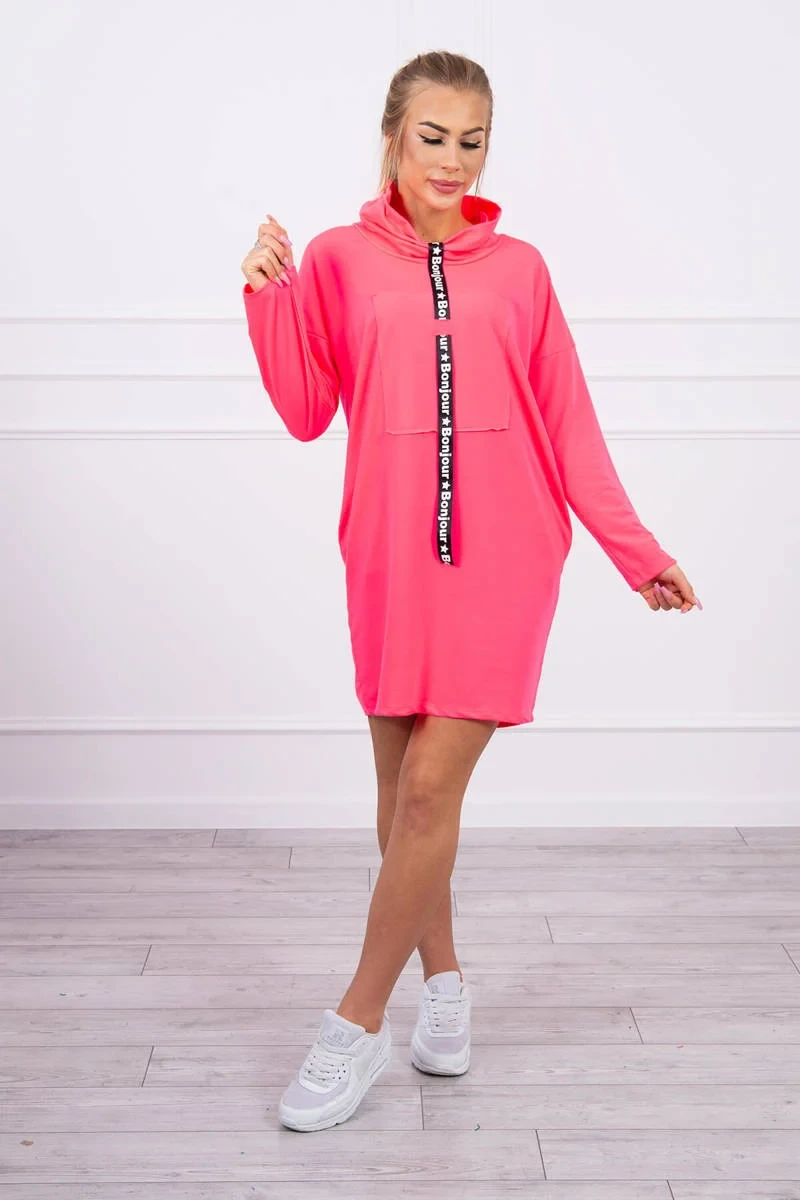 Šaty s kravatou růžové neonové