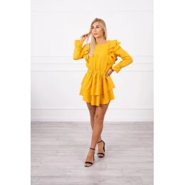 Šaty s model 18743670 volány hořčicové barvy - K-Fashion