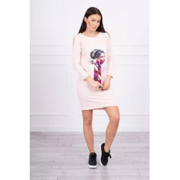 Šaty s model 18744100 a barevnou 3D mašlí pudrově růžové - K-Fashion