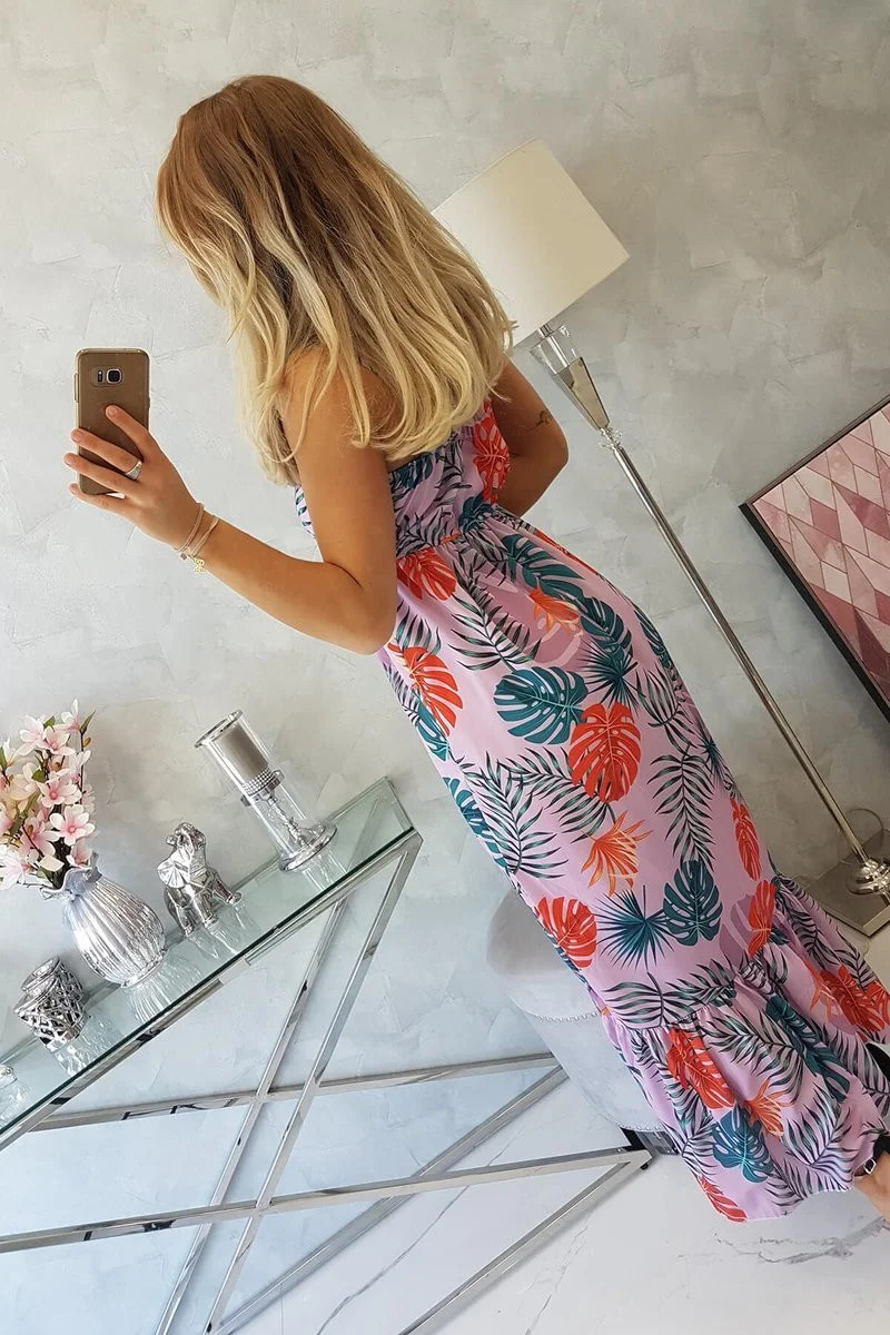 Představujeme vám pohodlné šaty bez ramínek s motivem listů. Velmi módní střih. Šaty jsou vyrobeny z vysoce kvalitního materiálu. Ideální pro letní dny. Velikost je univerzální a vyhovuje dámám, které nosí velikost S, M nebo L.
