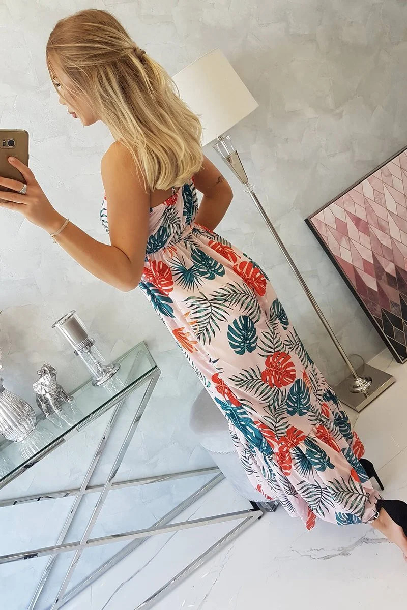 Představujeme vám pohodlné šaty bez ramínek s motivem listů. Velmi módní střih. Šaty jsou vyrobeny z vysoce kvalitního materiálu. Ideální pro letní dny. Velikost je univerzální a vyhovuje dámám, které nosí velikost S, M nebo L.