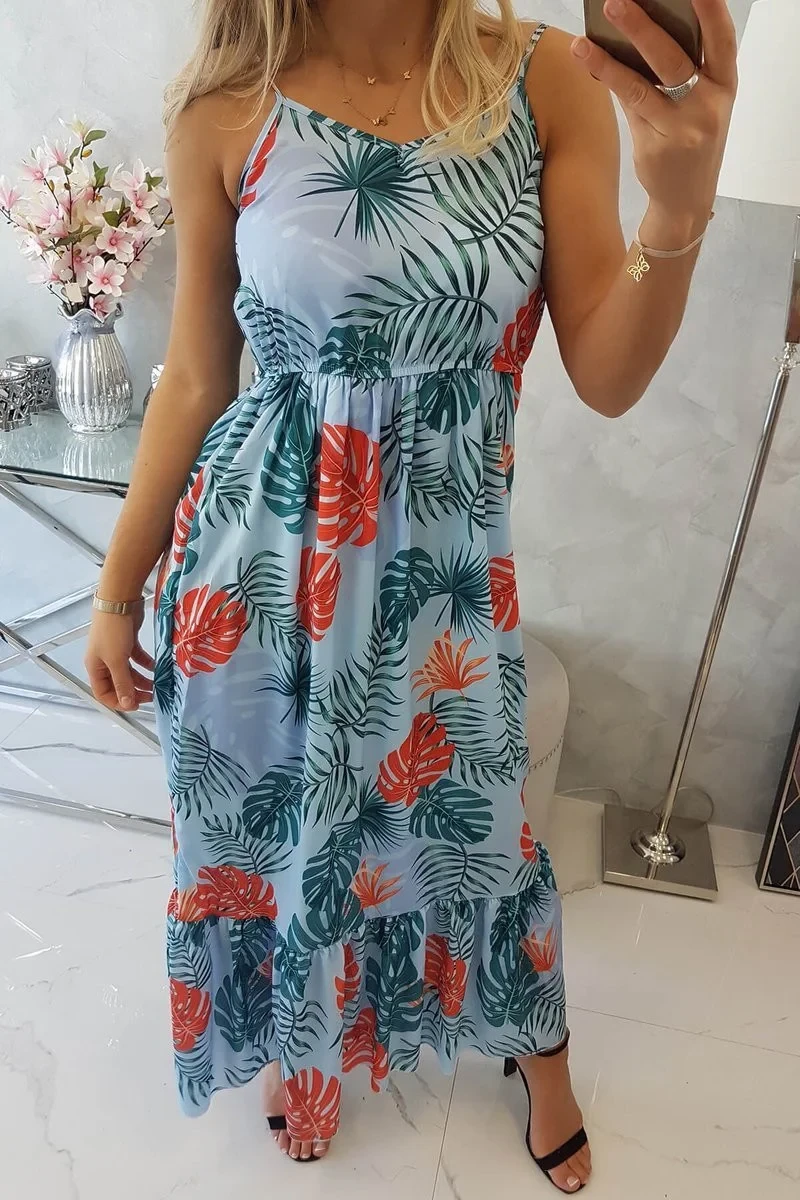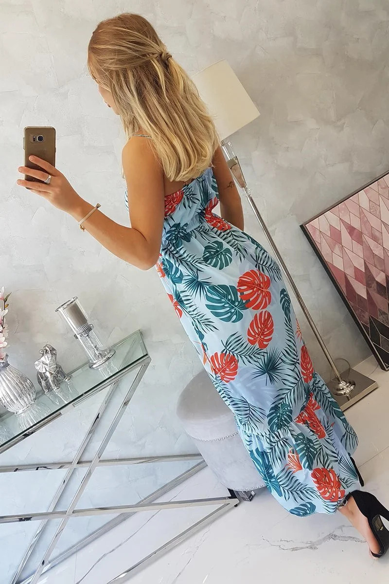 Představujeme vám pohodlné šaty bez ramínek s motivem listů. Velmi módní střih. Šaty jsou vyrobeny z vysoce kvalitního materiálu. Ideální pro letní dny. Velikost je univerzální a vyhovuje dámám, které nosí velikost S, M nebo L.