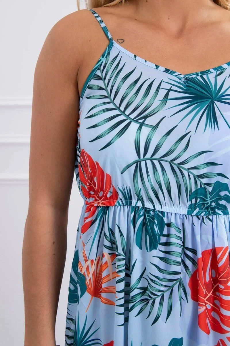 Šaty s motivem listů v modré barvě
