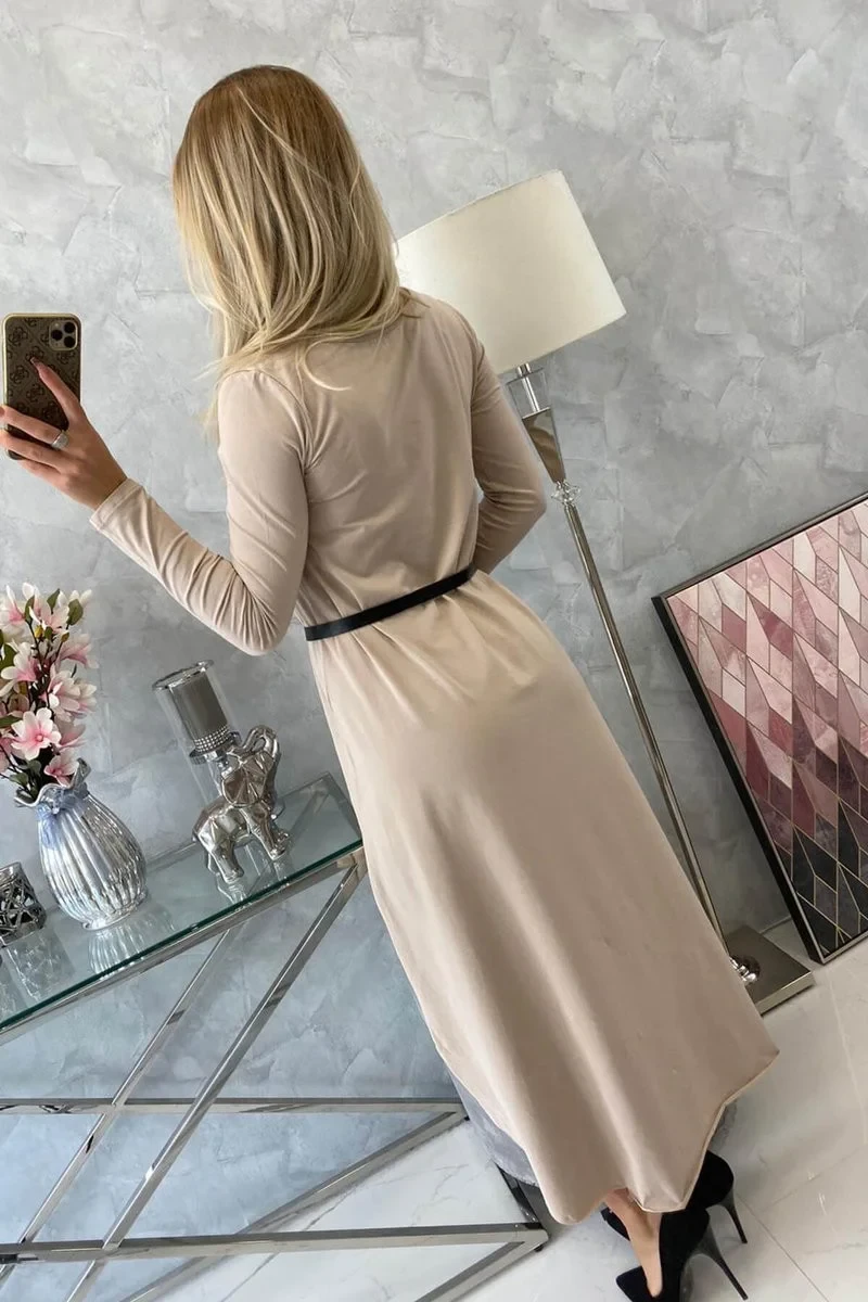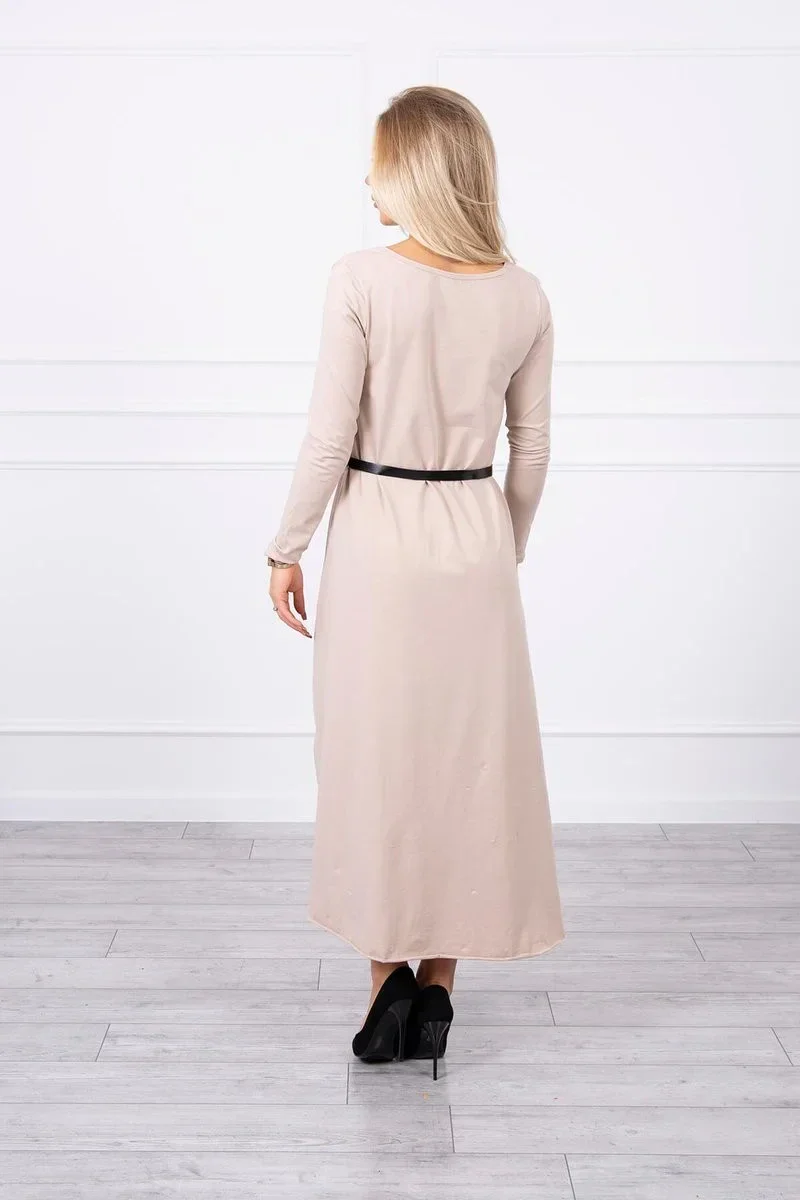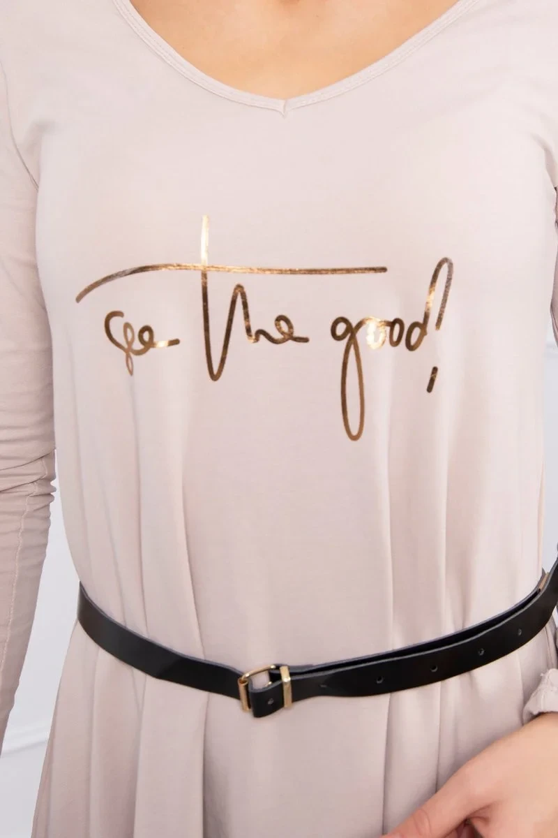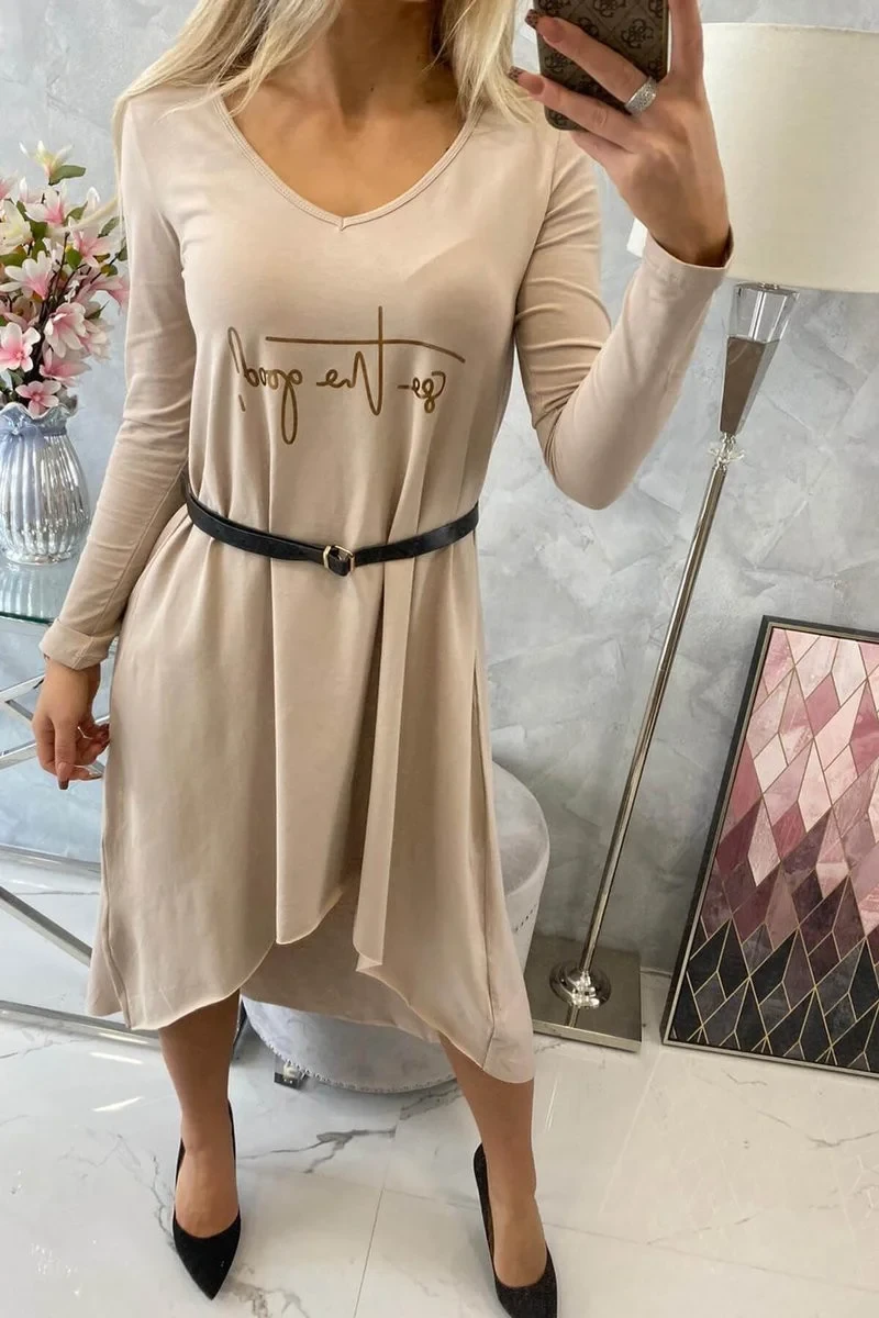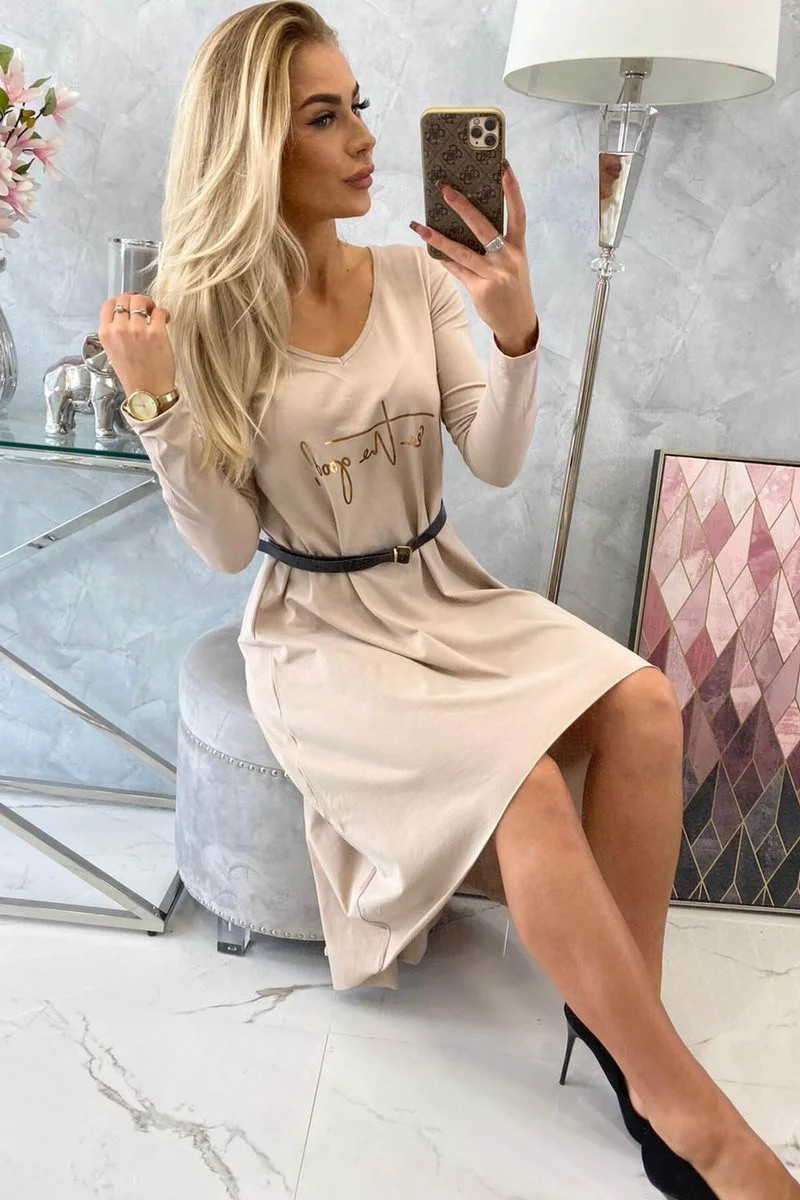 Šaty s ozdobným páskem a nápisem beige