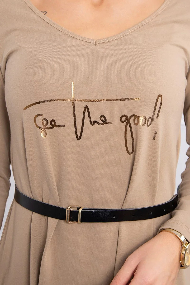 Šaty s ozdobným páskem a nápisem camel