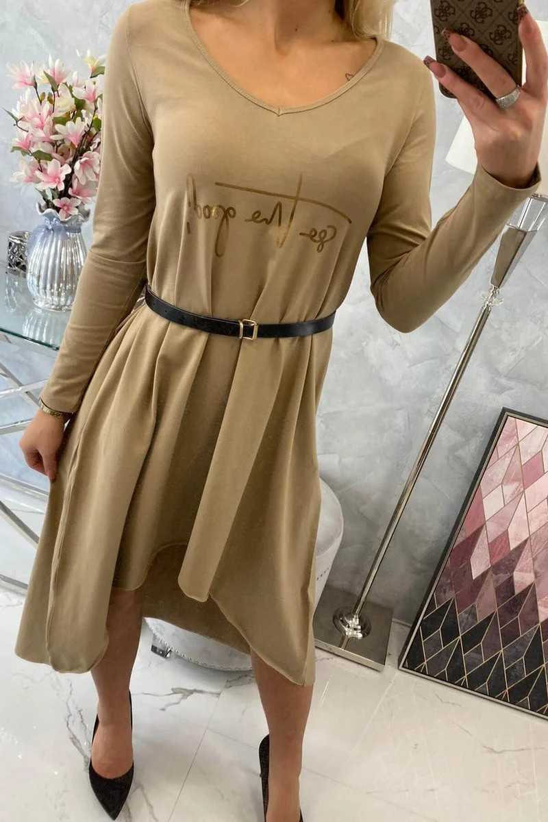 Šaty s ozdobným páskem a nápisem camel