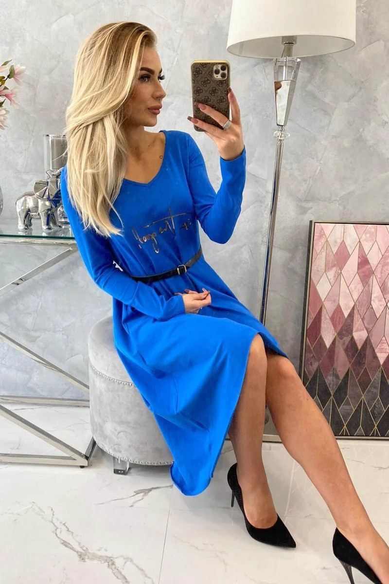 Šaty s ozdobným páskem a nápisem cornflower blue
