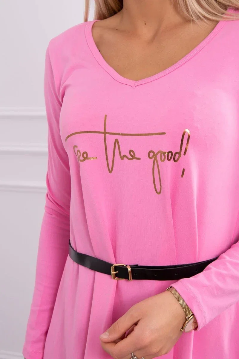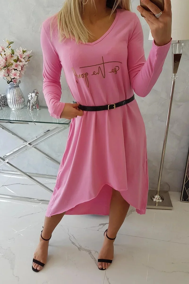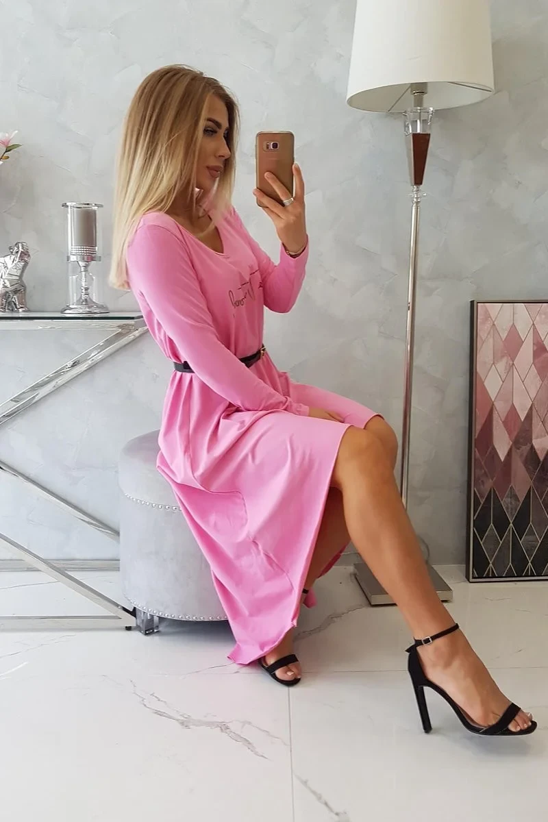 Přidání recenze k Šaty s ozdobným páskem a nápisem light pink
