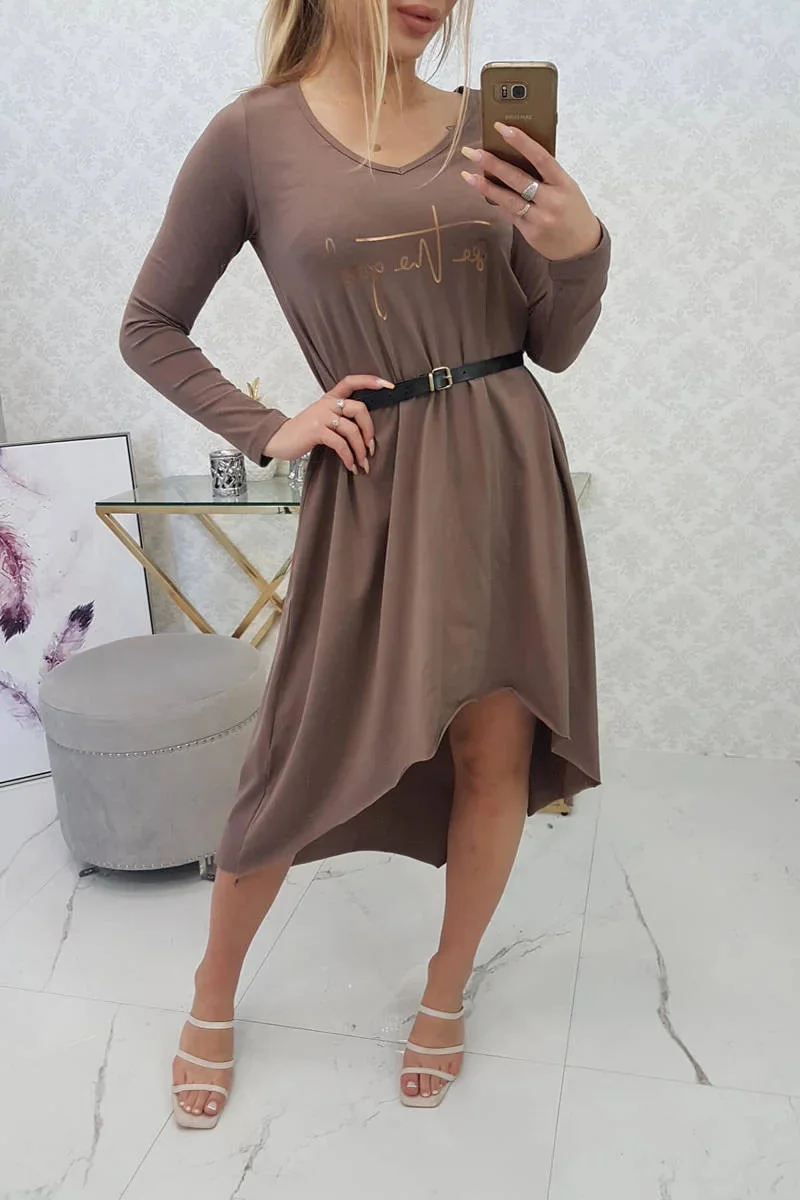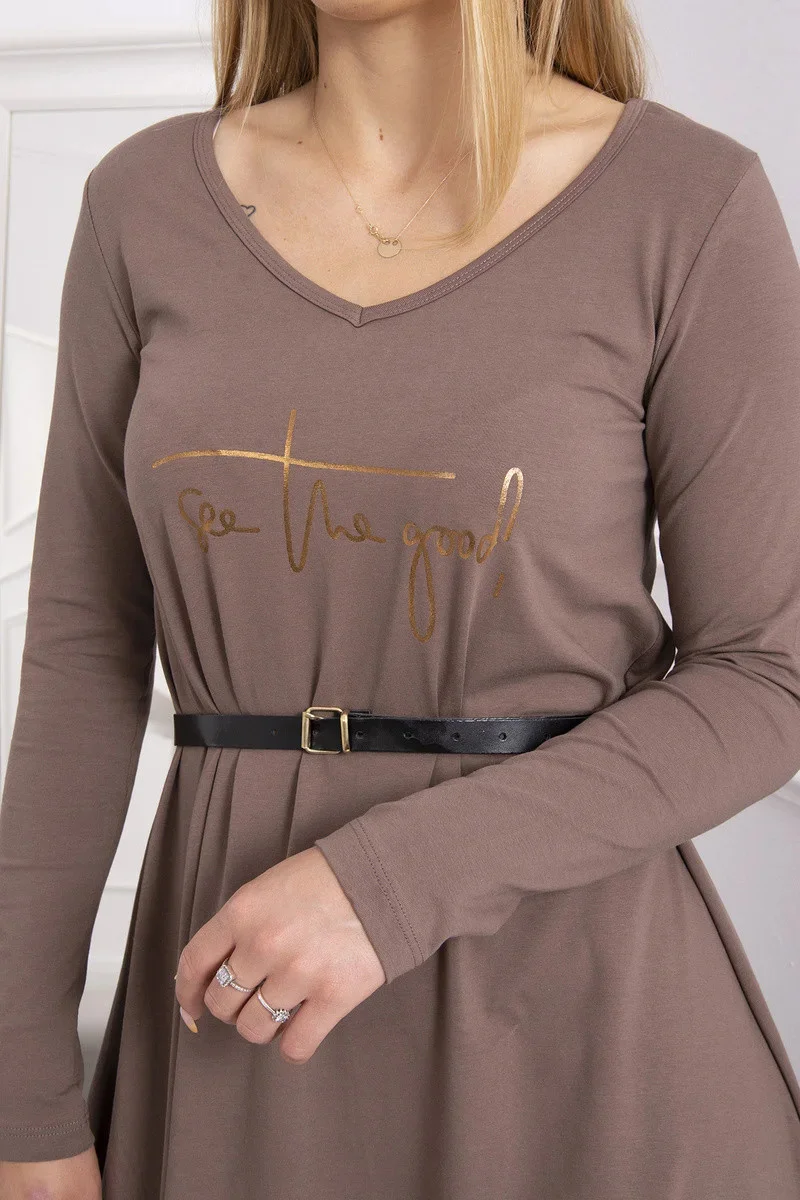 Přidání recenze k Šaty s ozdobným páskem a nápisem mocca