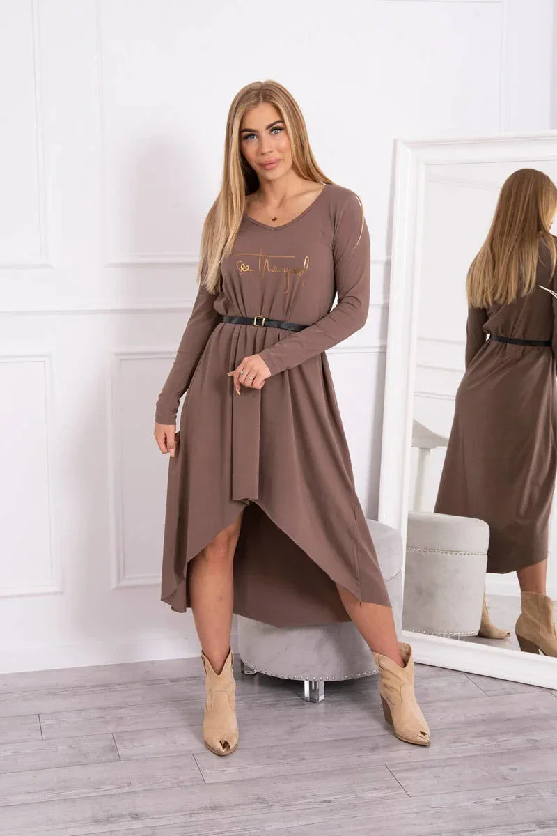 Představujeme vám pohodlné šaty s ozdobným páskem a módním nápisem na přední straně. Šaty mají delší záda. Šaty jsou vyrobeny z vysoce kvalitního materiálu. Velmi zajímavá nabídka pro všechny dámy. Velikost je univerzální a vyhovuje dámám, které nosí velikost S, M nebo L.