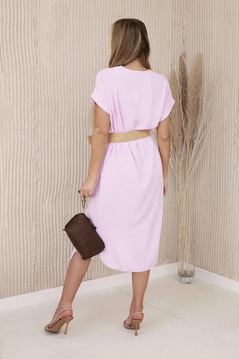 Šaty s ozdobným páskem model 20904532 růžová - K-Fashion