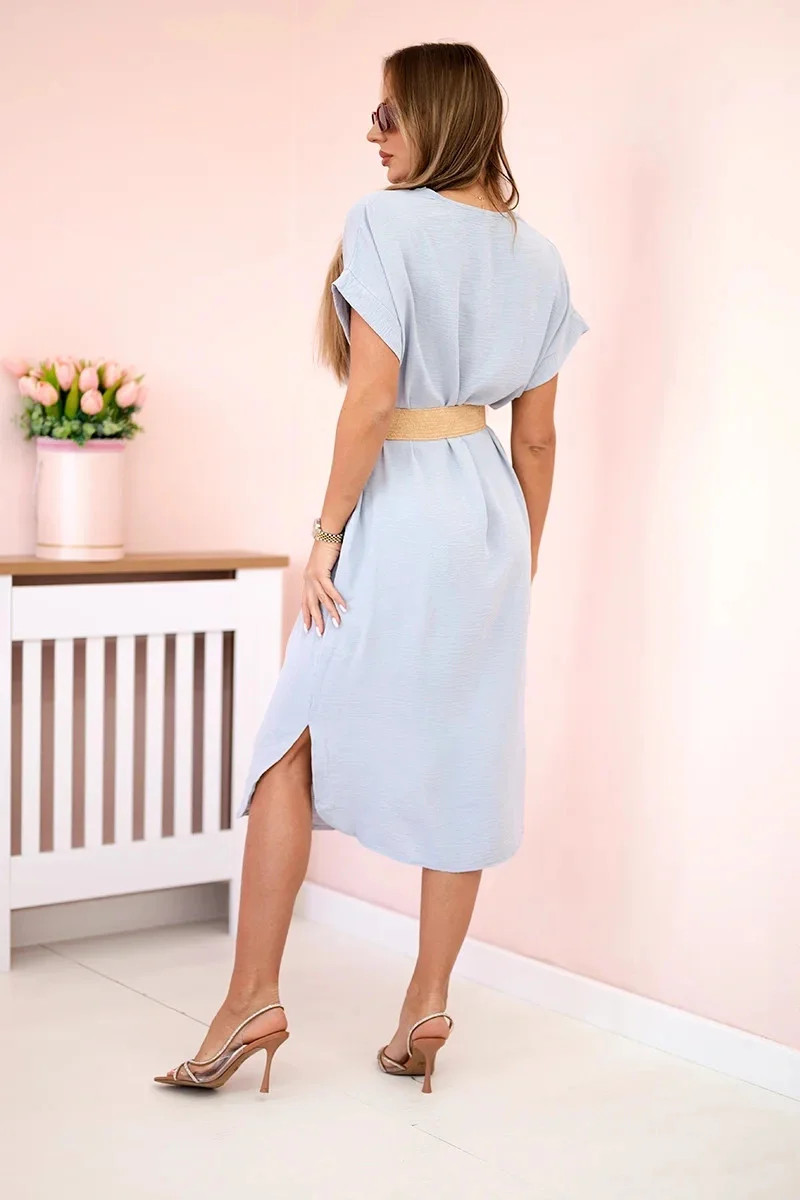 Šaty s ozdobným páskem šedý