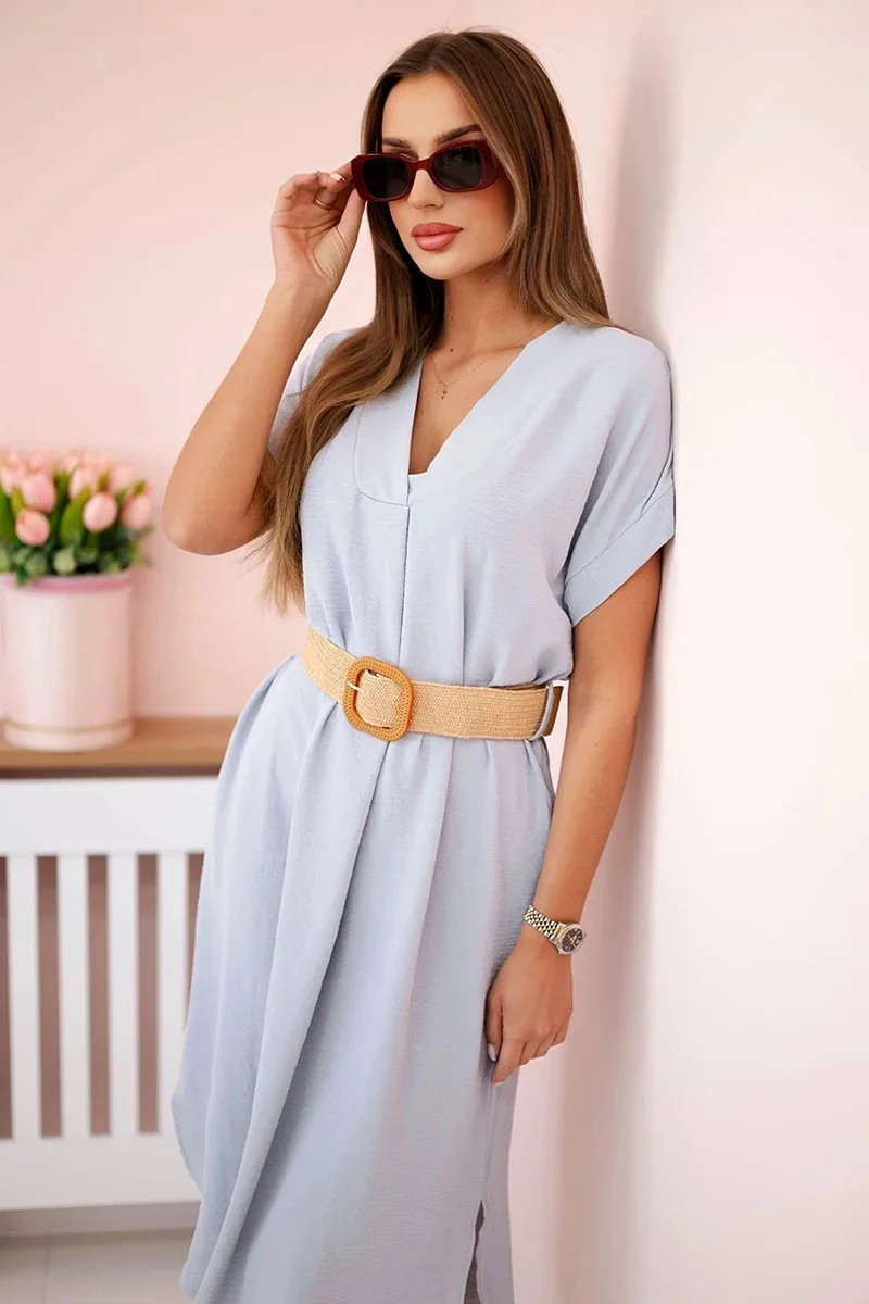 Představujeme vám pohodlné šaty s ozdobným páskem. Šaty mají ve spodní části boční rozparky. Šaty jsou vyrobeny z vysoce kvalitního materiálu. Velmi zajímavá nabídka pro všechny dámy. Velikost je univerzální a vyhovuje dámám, které nosí velikost S, M nebo L.